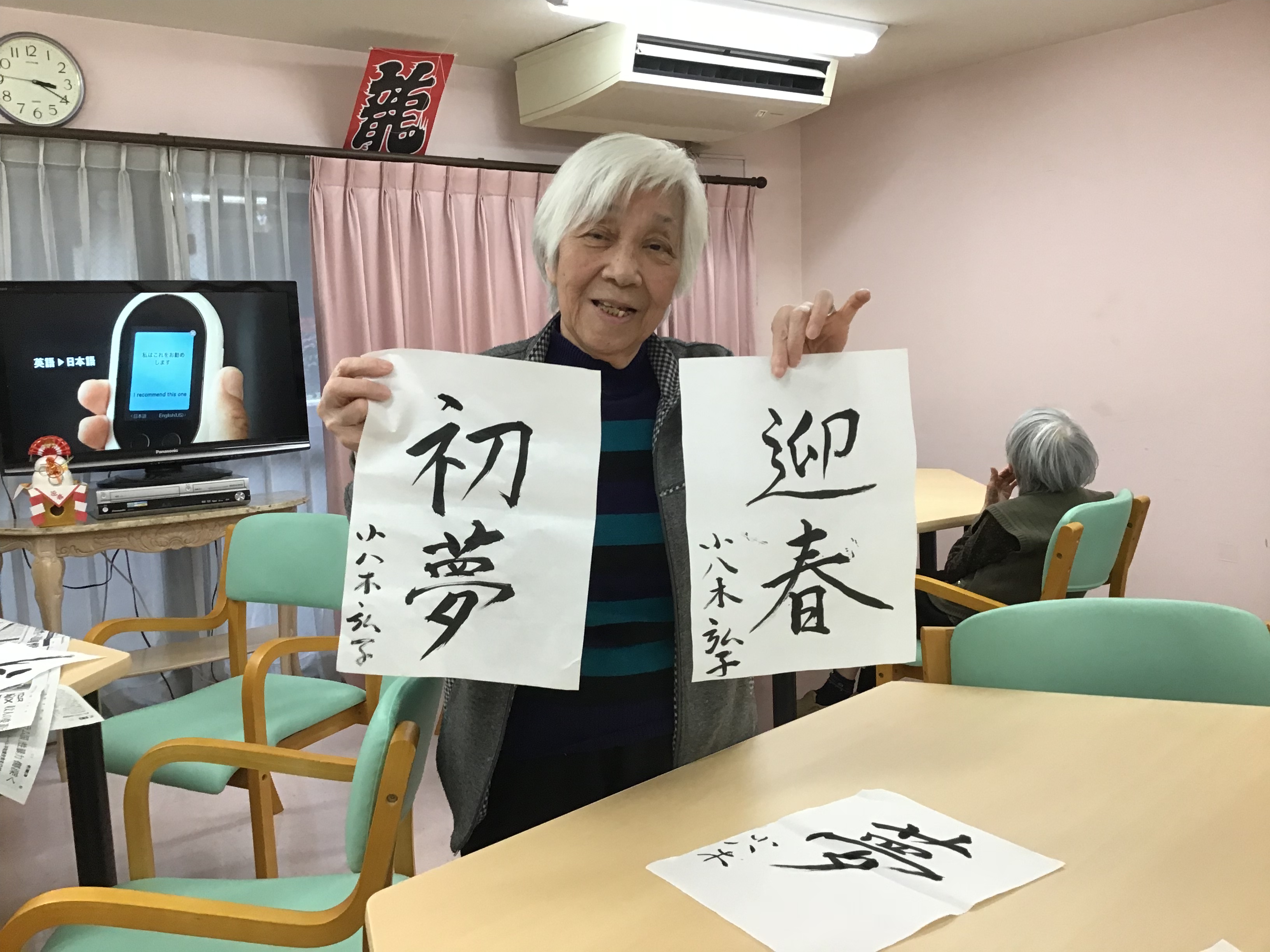 その後、レクレーションで書初めをさせて頂きました(*'-'*)