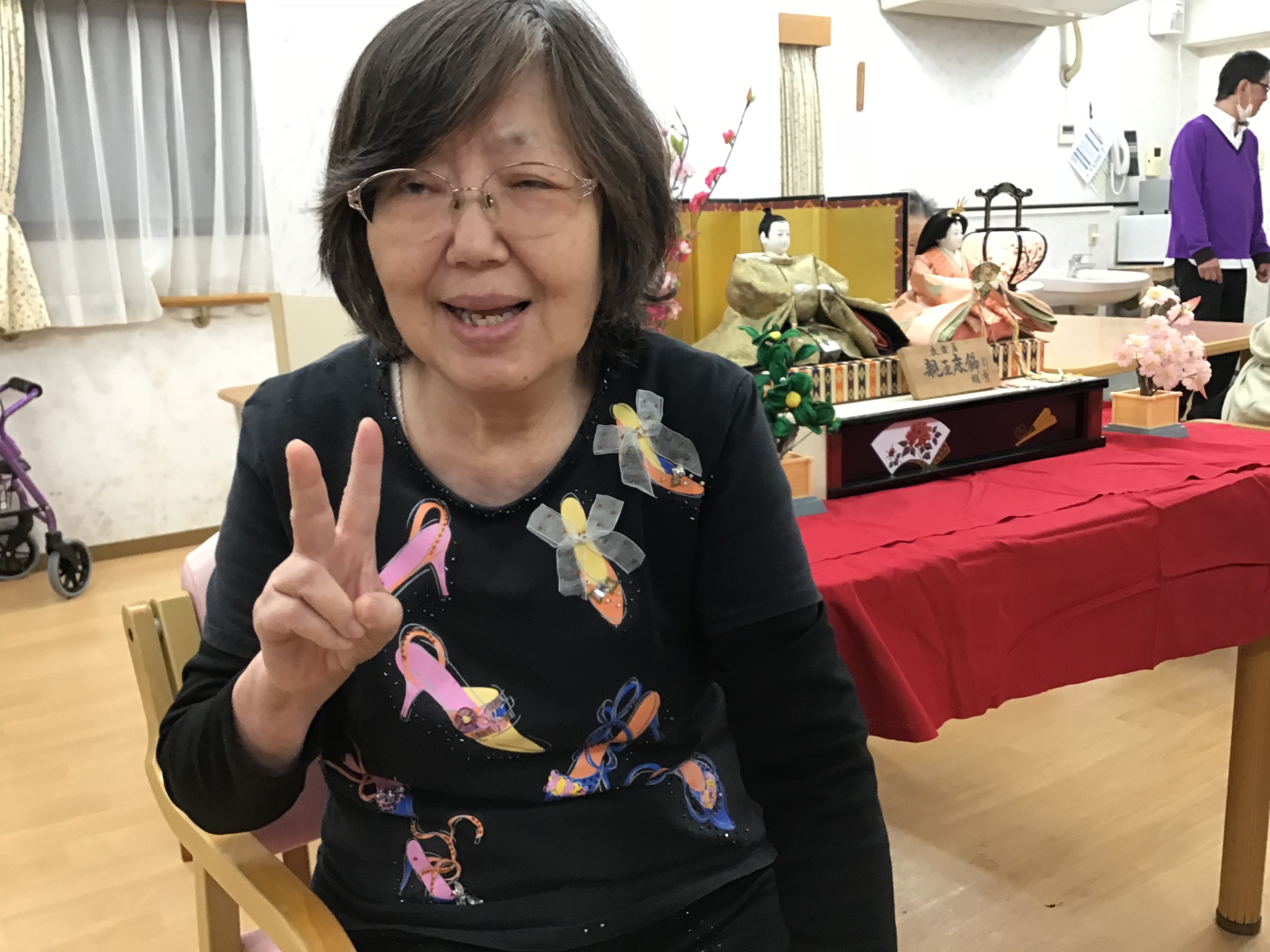 今回はレクレーションでは、みんなで手遊びをしたり、ひな祭りの歌をみんなで楽しく、歌い素敵な歌声が食堂いっぱいに響きました(≧∇≦)