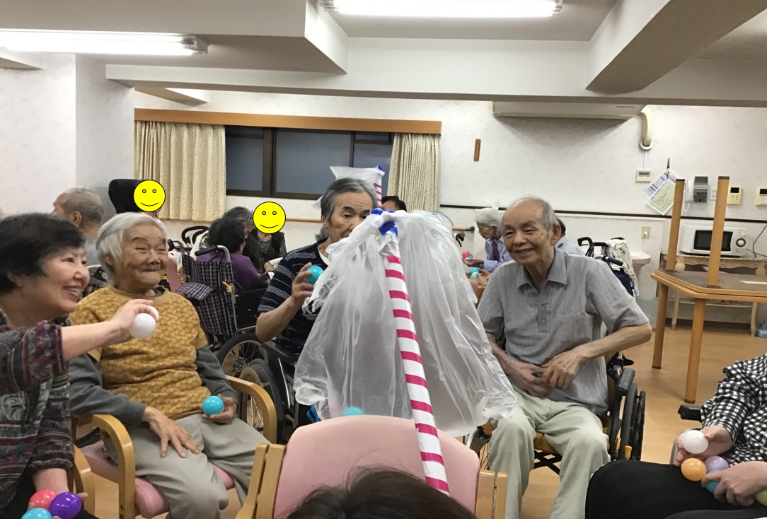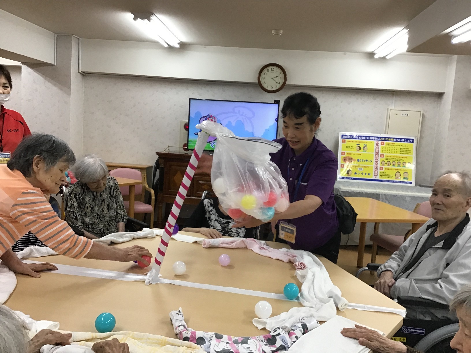 先日、東住吉1号館では敬老の日にレクを行いました(*゚ー゚)