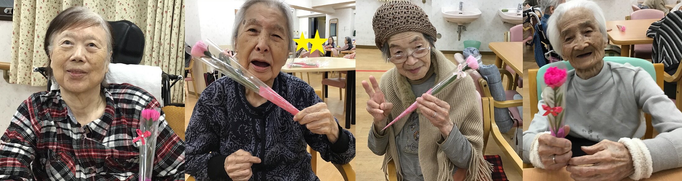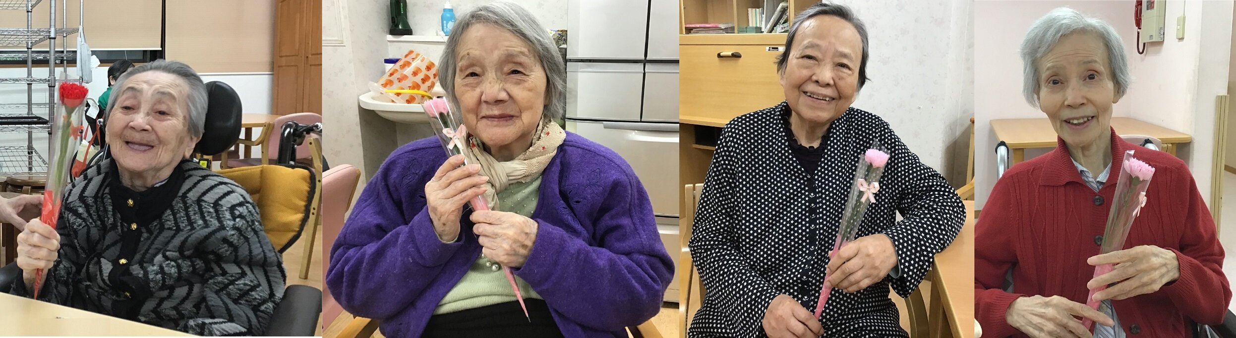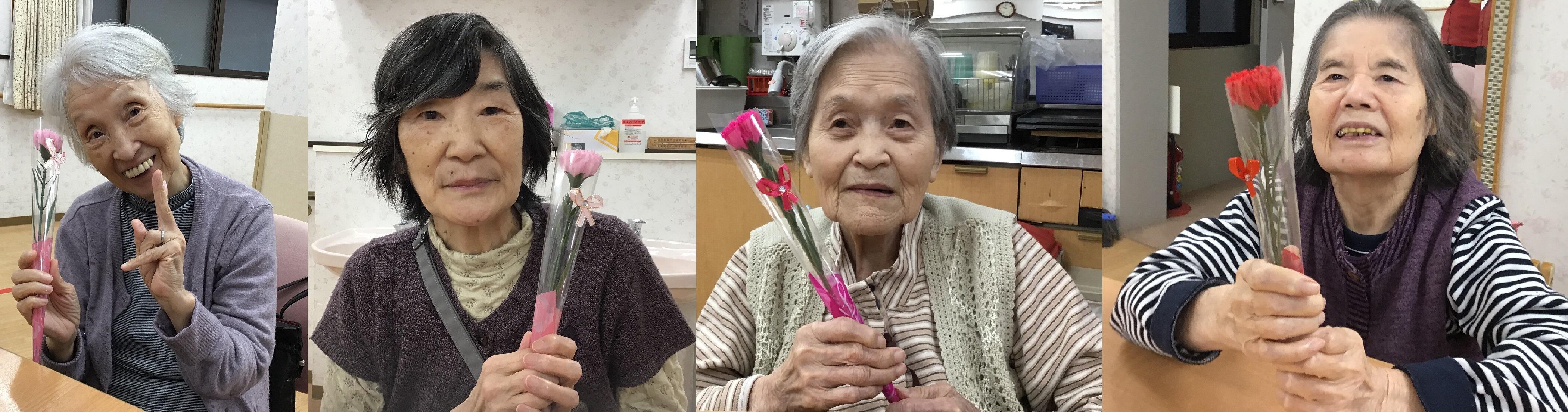 カーネーションのプレゼント良いですね。笑顔の写真が並んでいてCMみたいです。喜ばれて良かったです。
