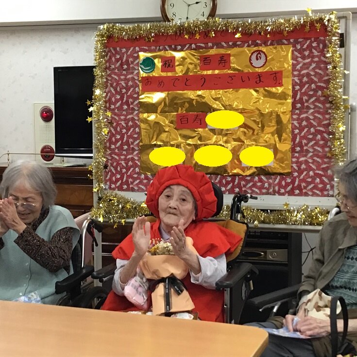 今回はなんと!"100歳"になられたご入居者の百寿のお祝いも行いました。