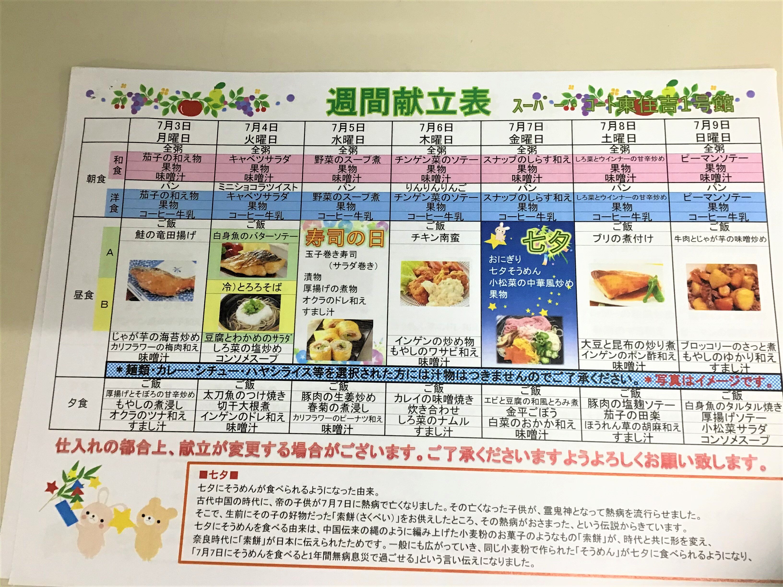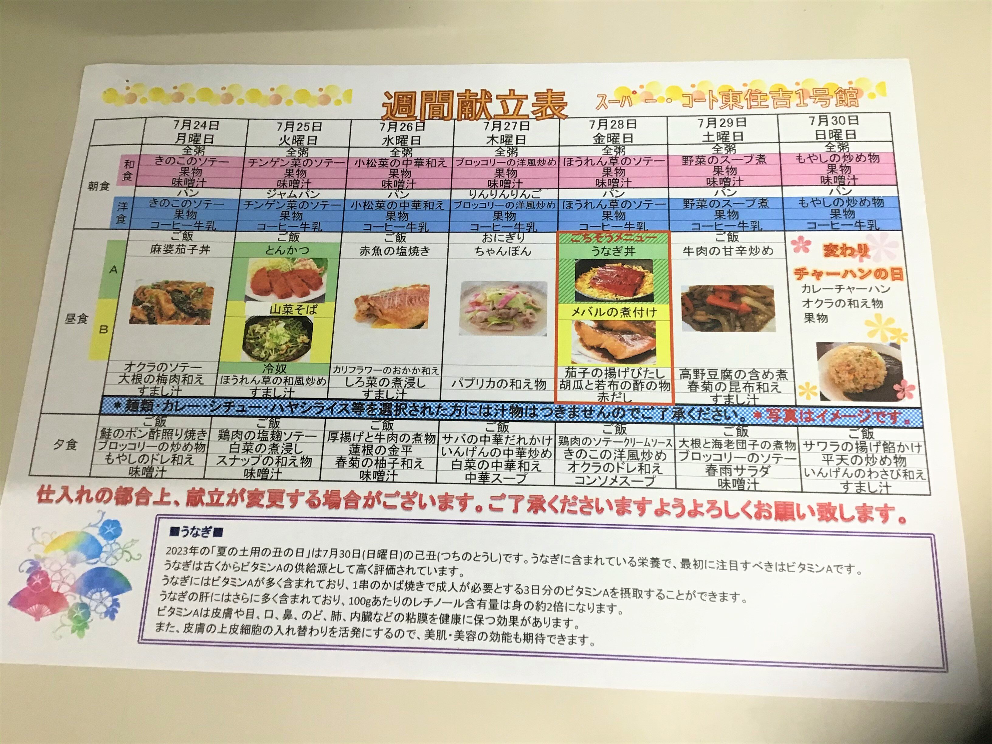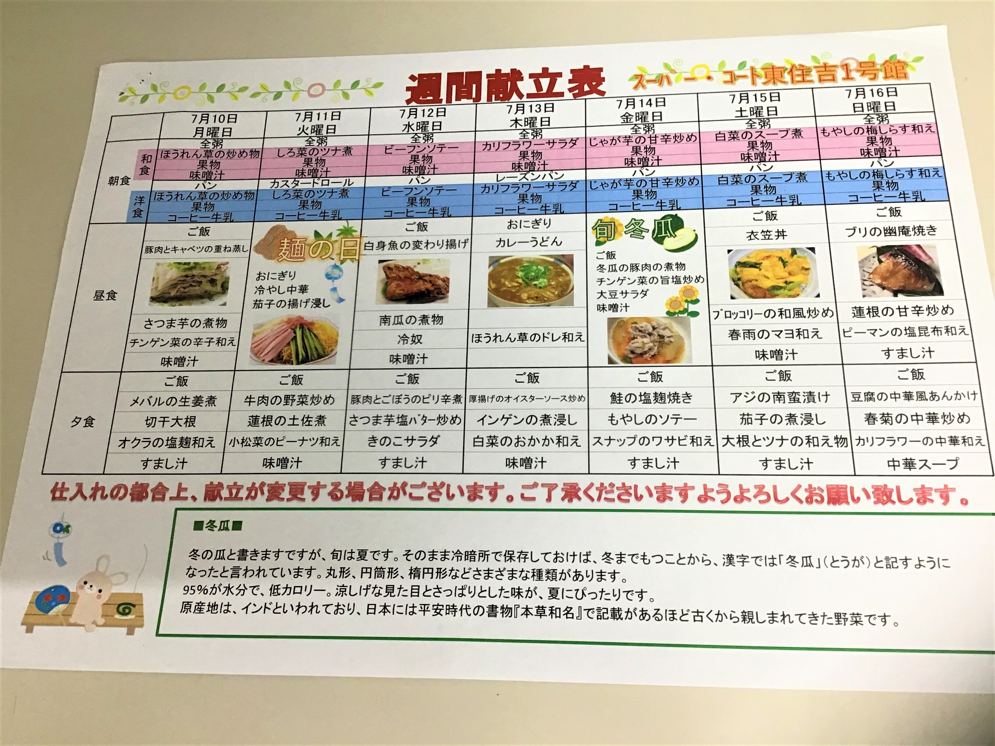 東住吉1号館、7月の食事メニューのご紹介をさせて頂きます。
