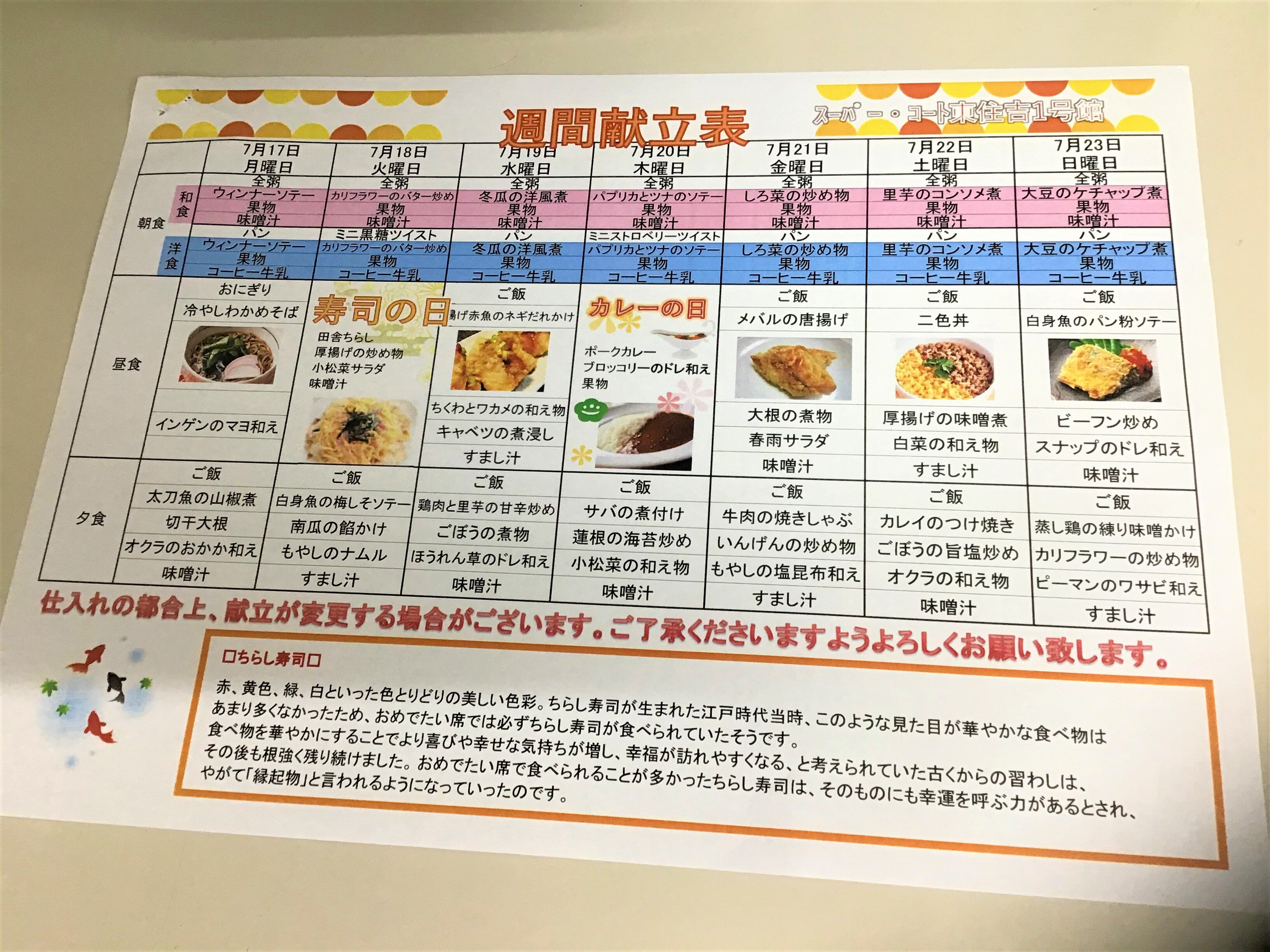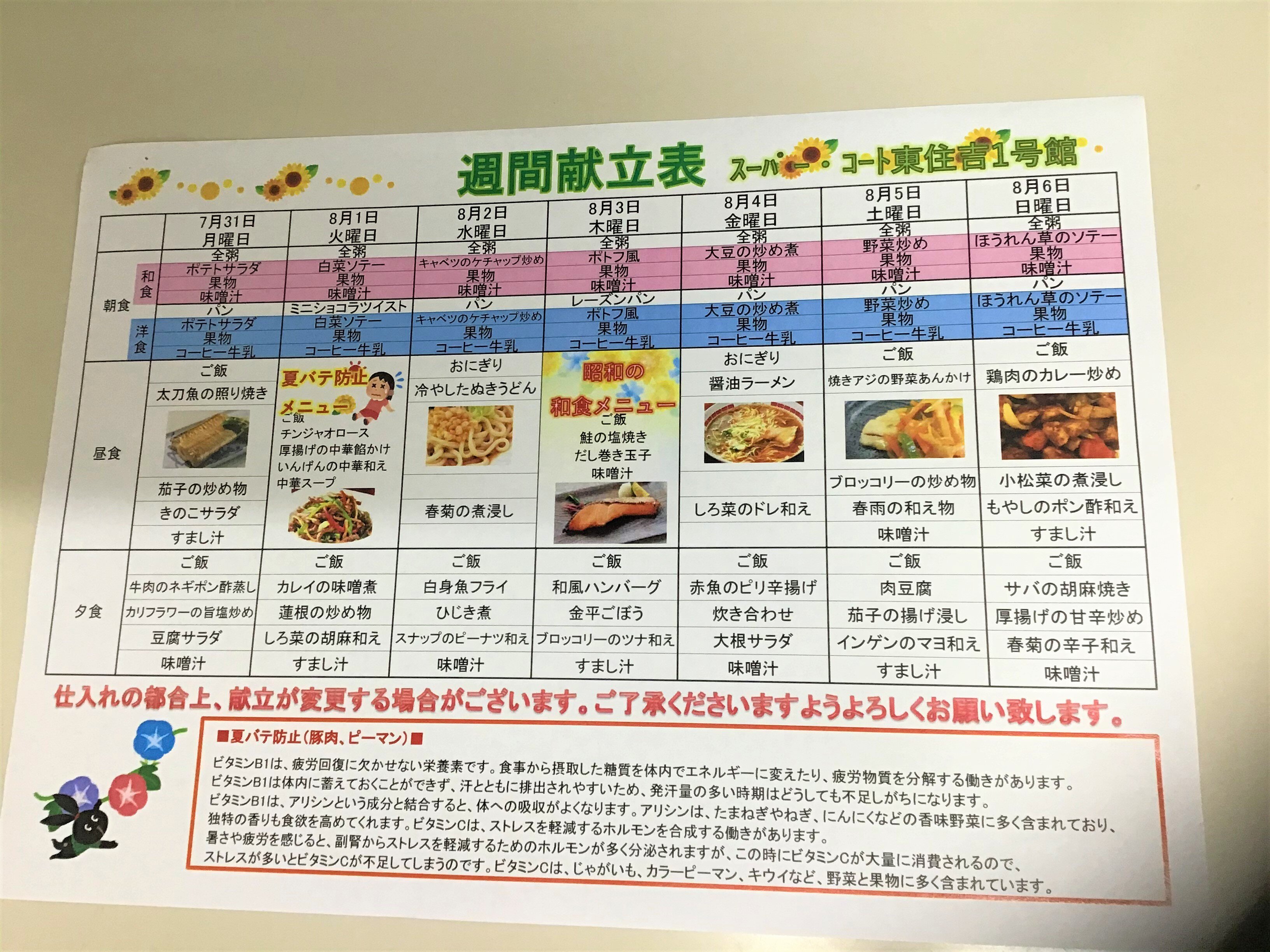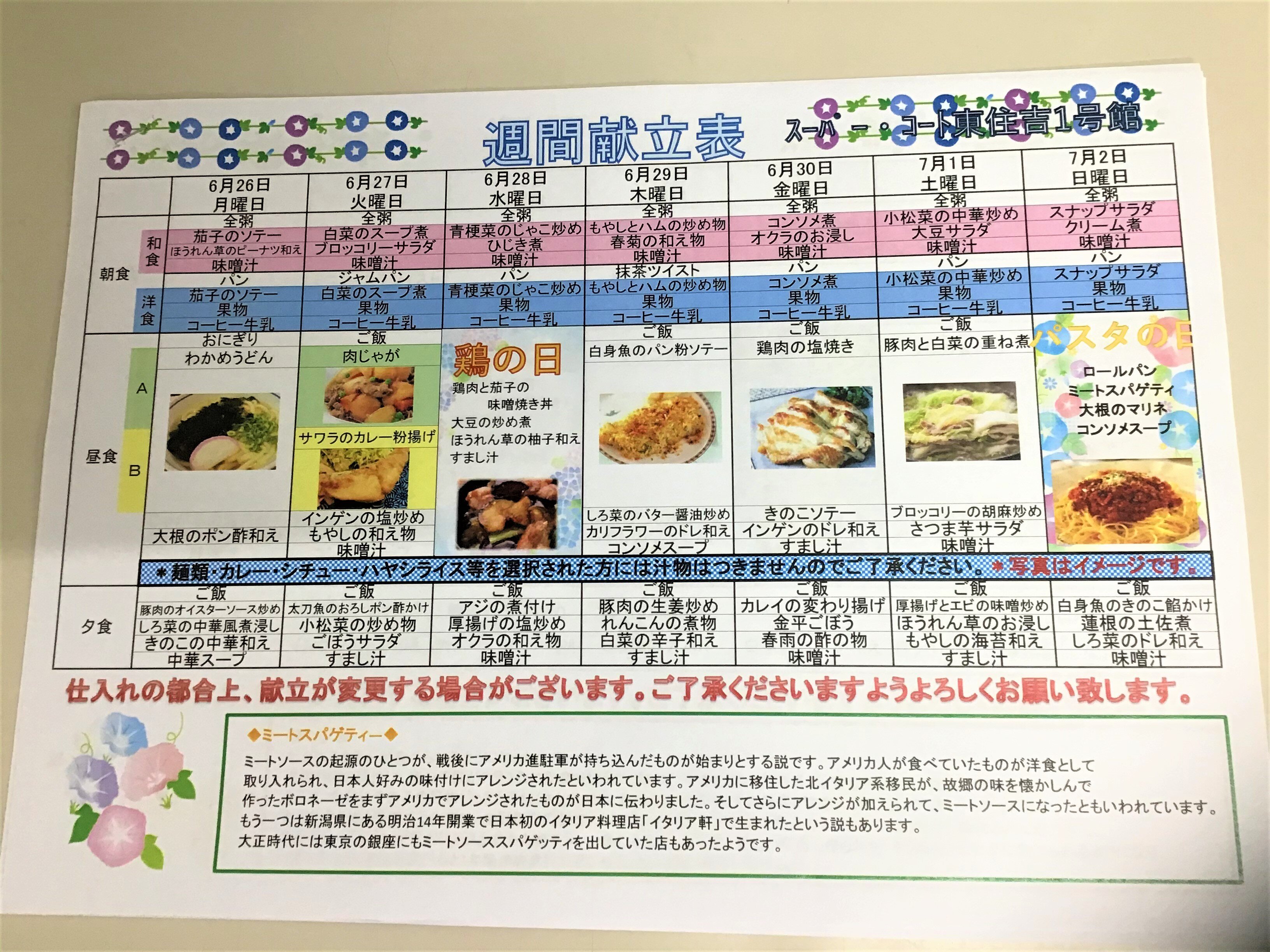 東住吉1号館、7月の食事メニューのご紹介をさせて頂きます。