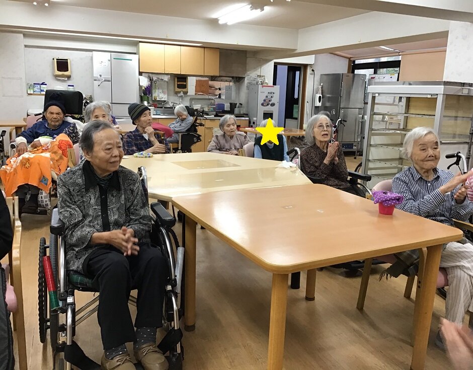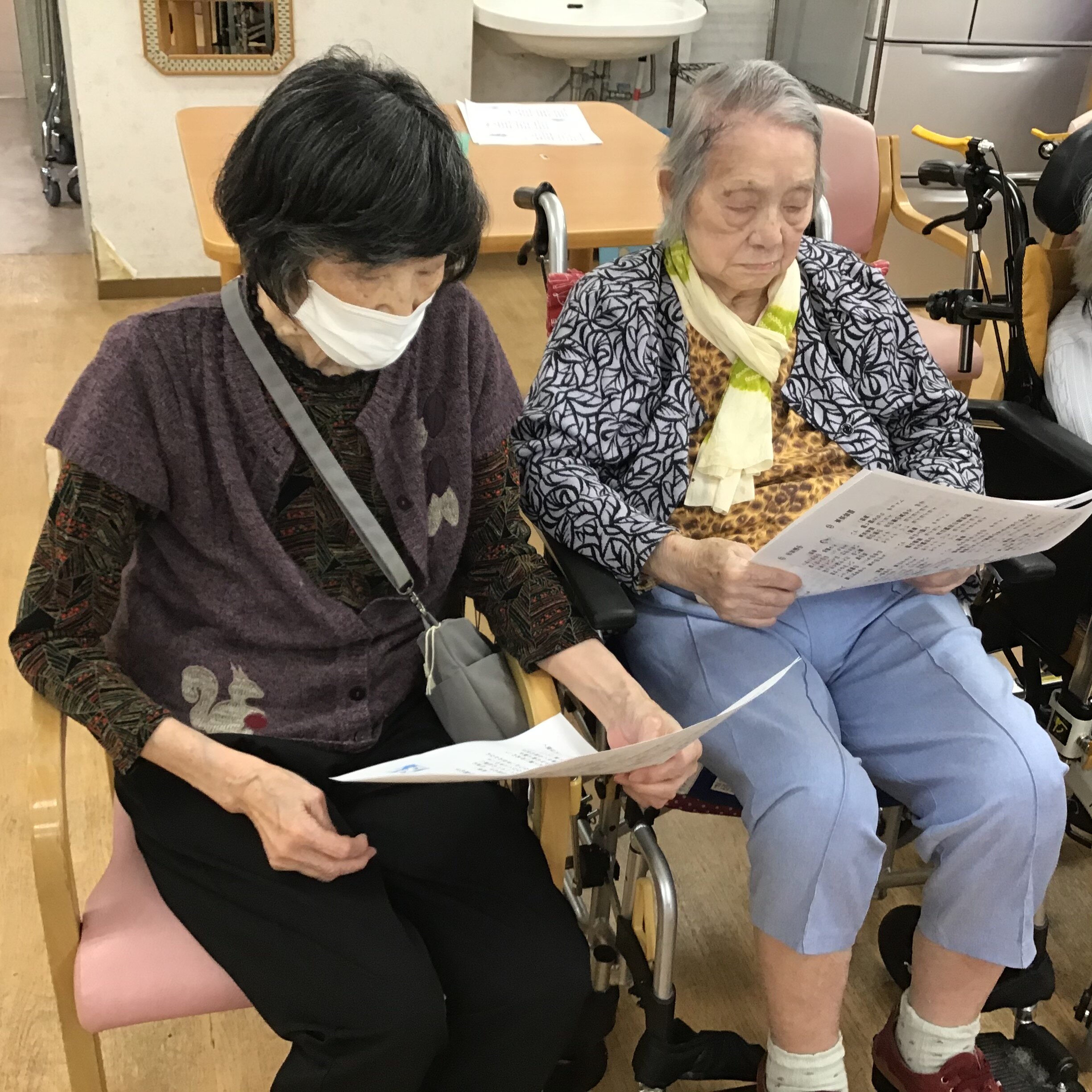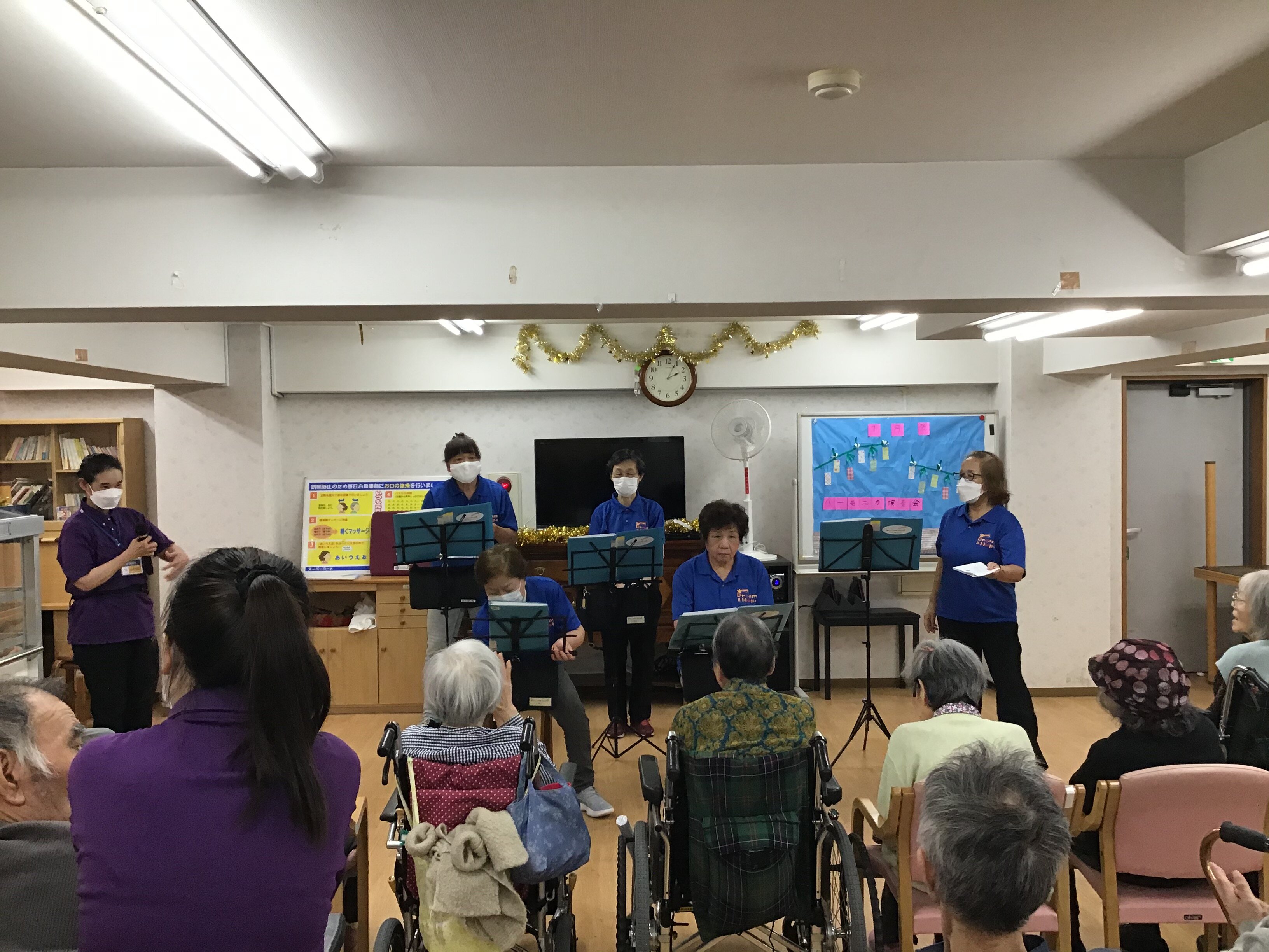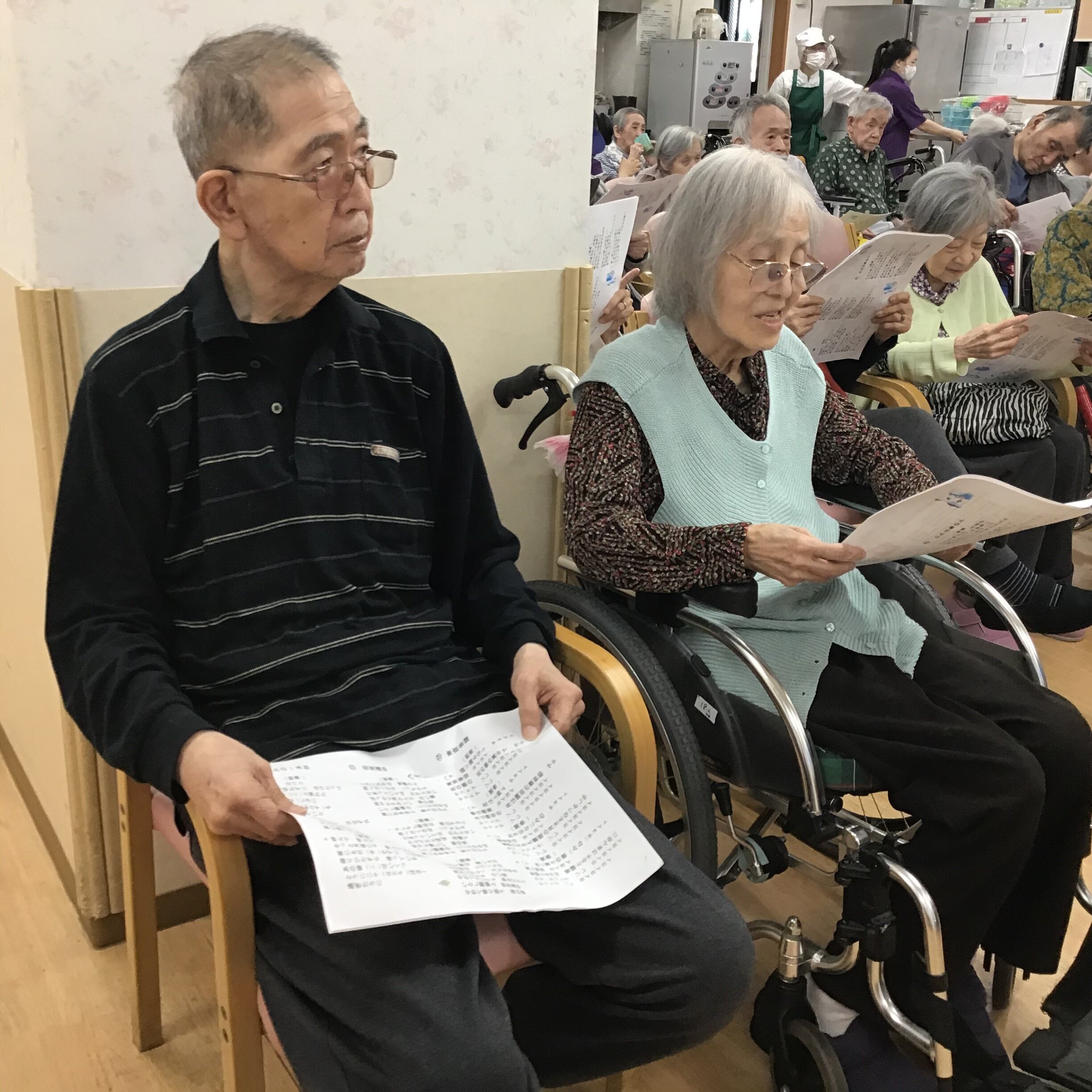夏の曲や歌謡曲など演奏していただき歌詞カードをみて口ずさんでいました