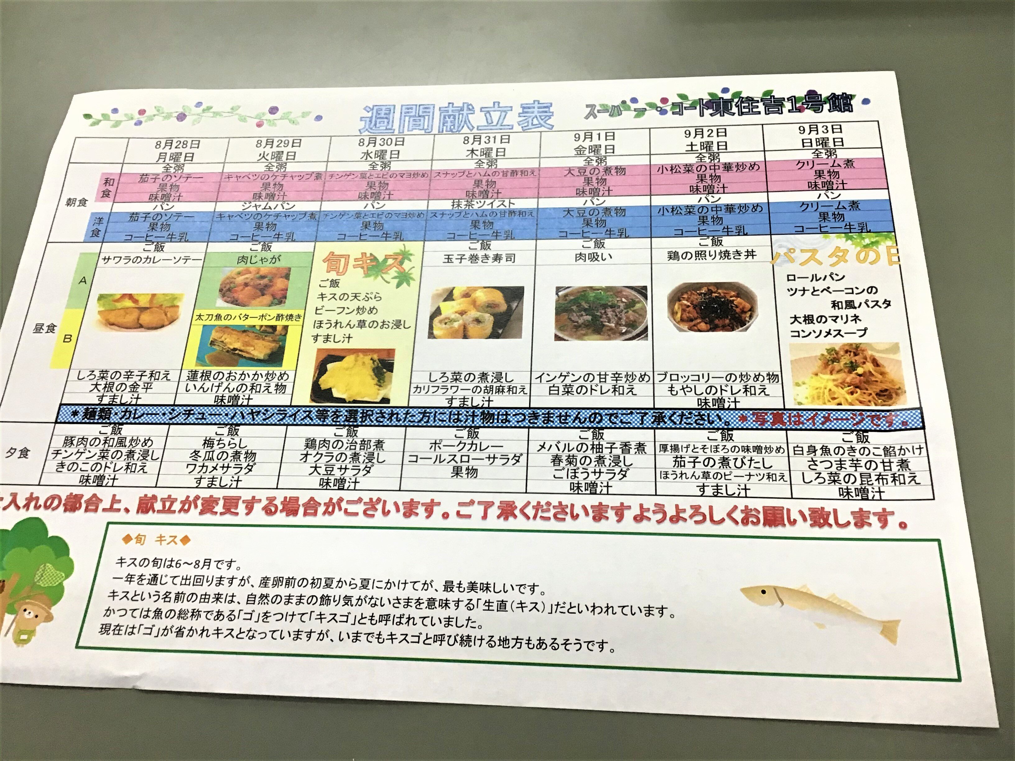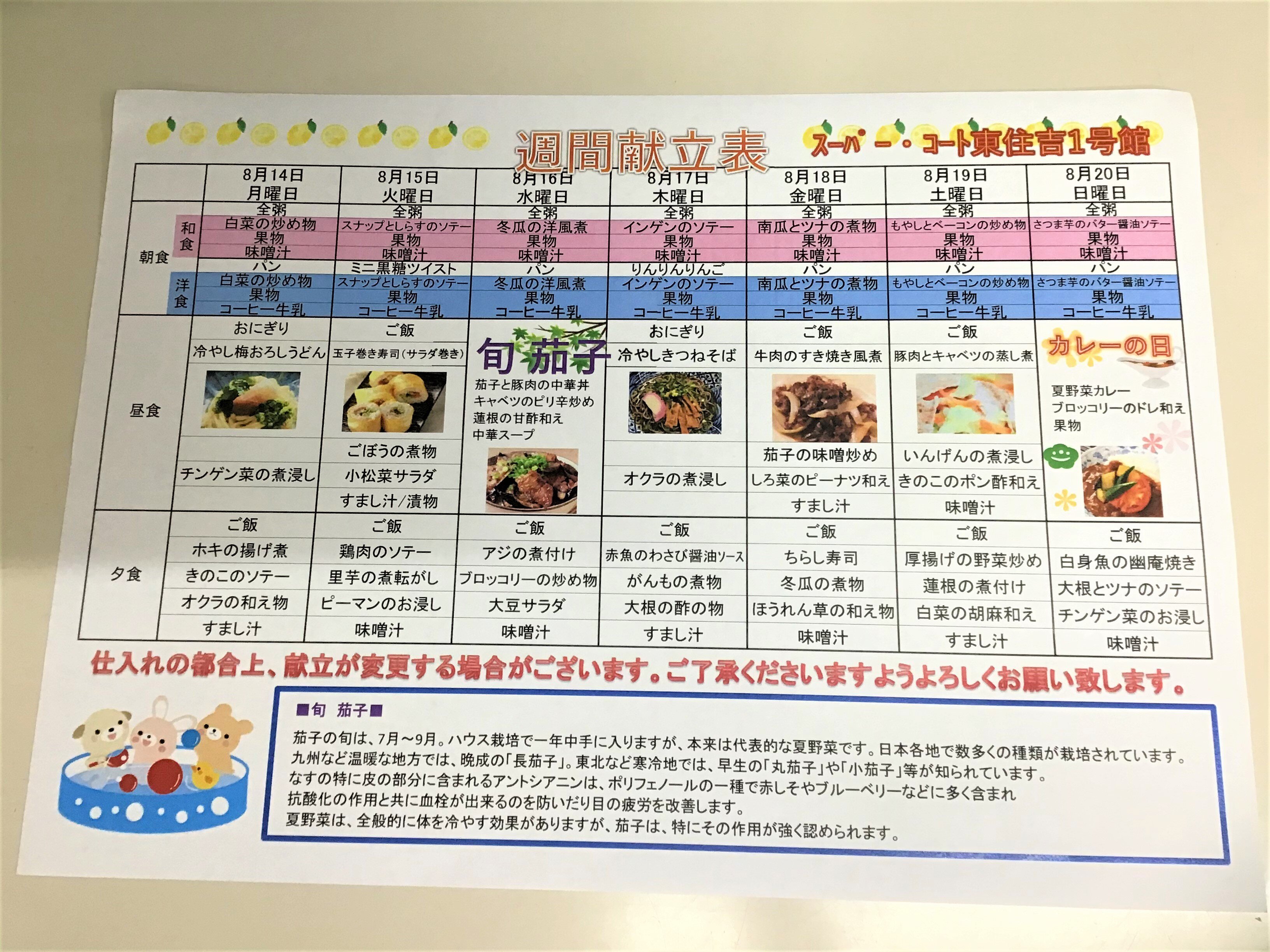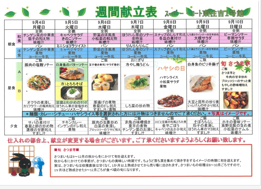 9月第1週目の献立を紹介させていただきます。
