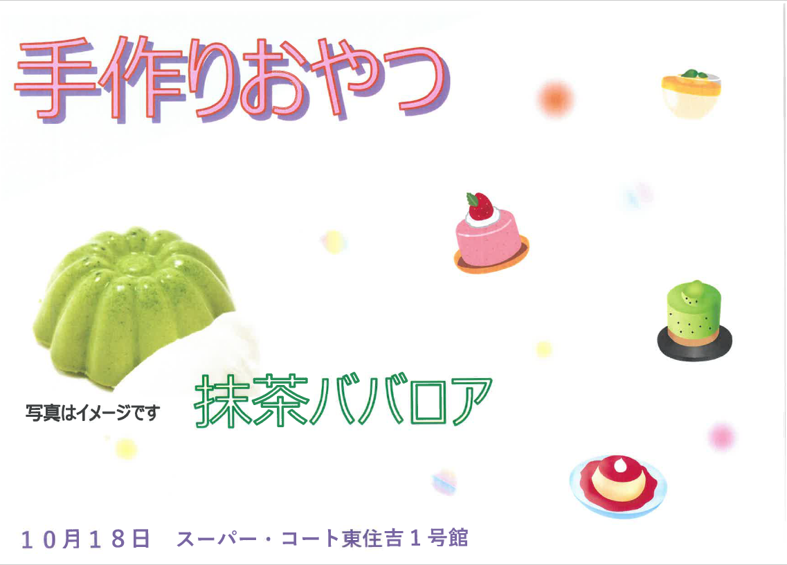 人気の手作りおやつ、抹茶ババロア、楽しみですね。
