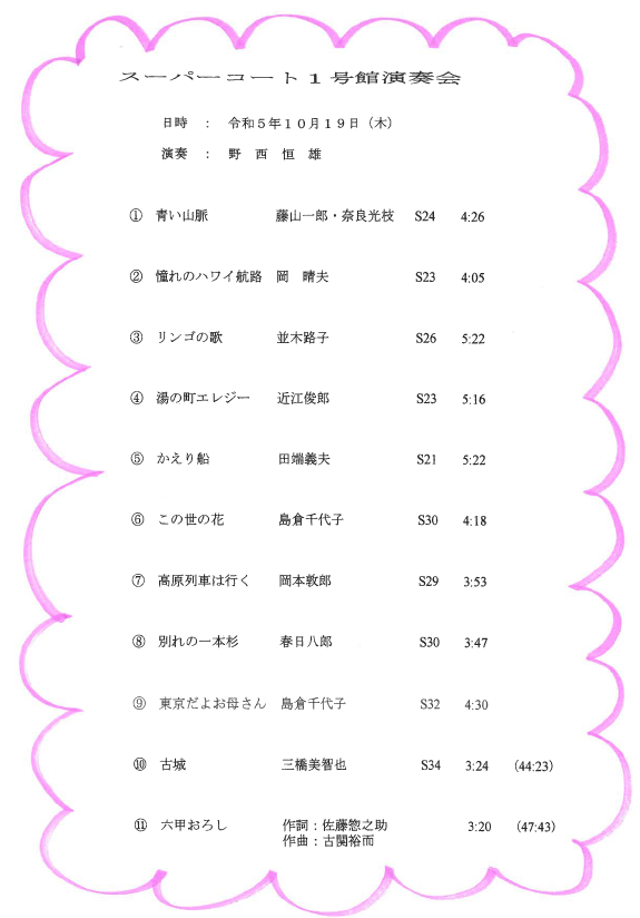 普段から皆様がカラオケで歌っておられる馴染みの歌がたくさん登場しました(^^)
