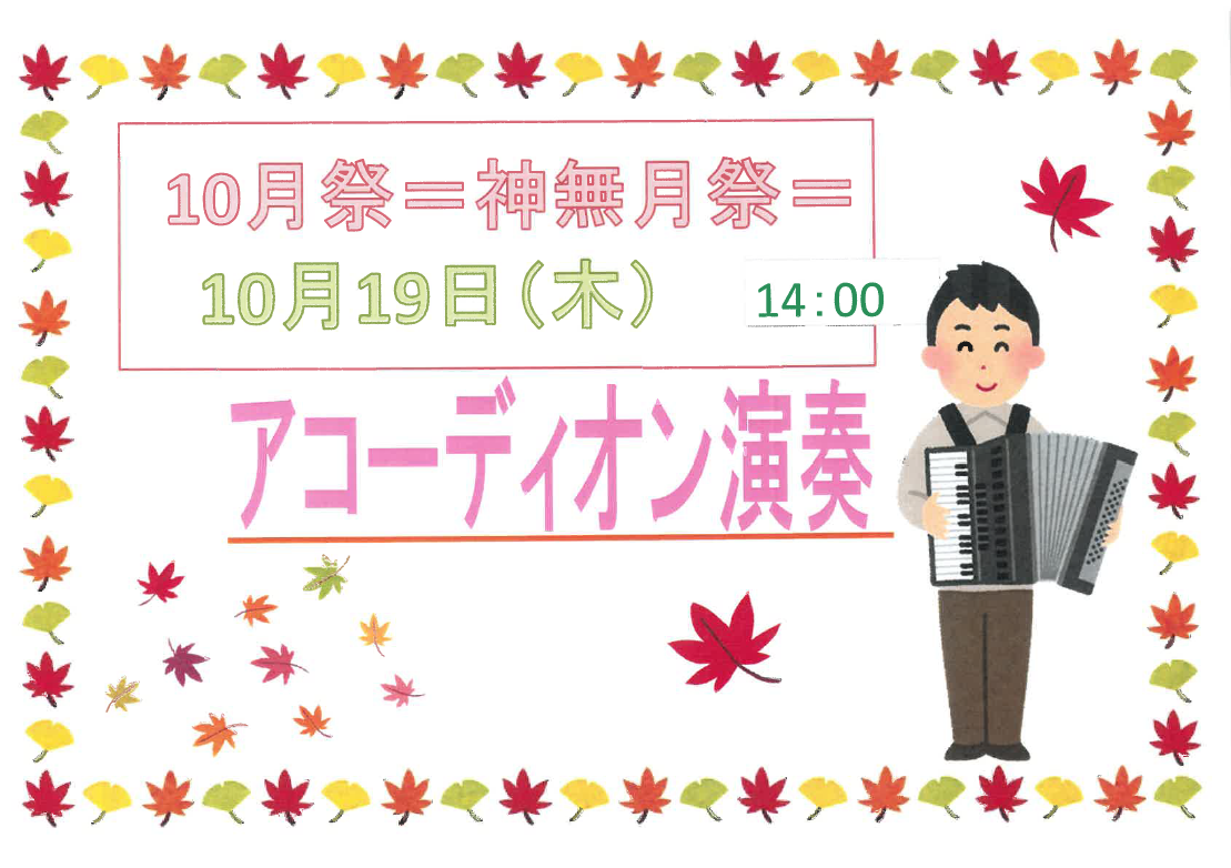 10月19日(木)に、10月祭「神無月祭」を予定しております。