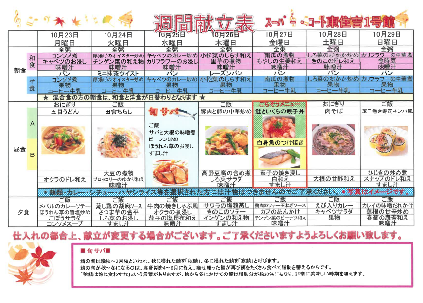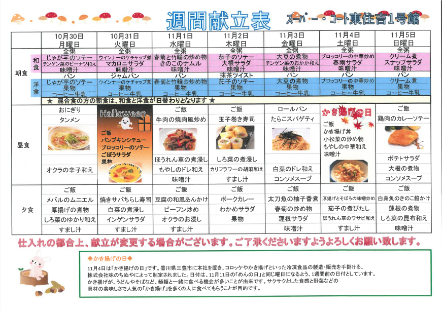 4週目は、ごちそうメニュー、5週目は、ハロウィーンメニューも