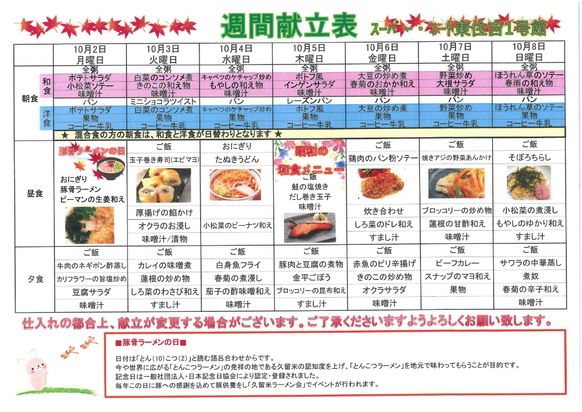 10月10日は、選択食メニューで、たぬき丼かブリの山椒煮か