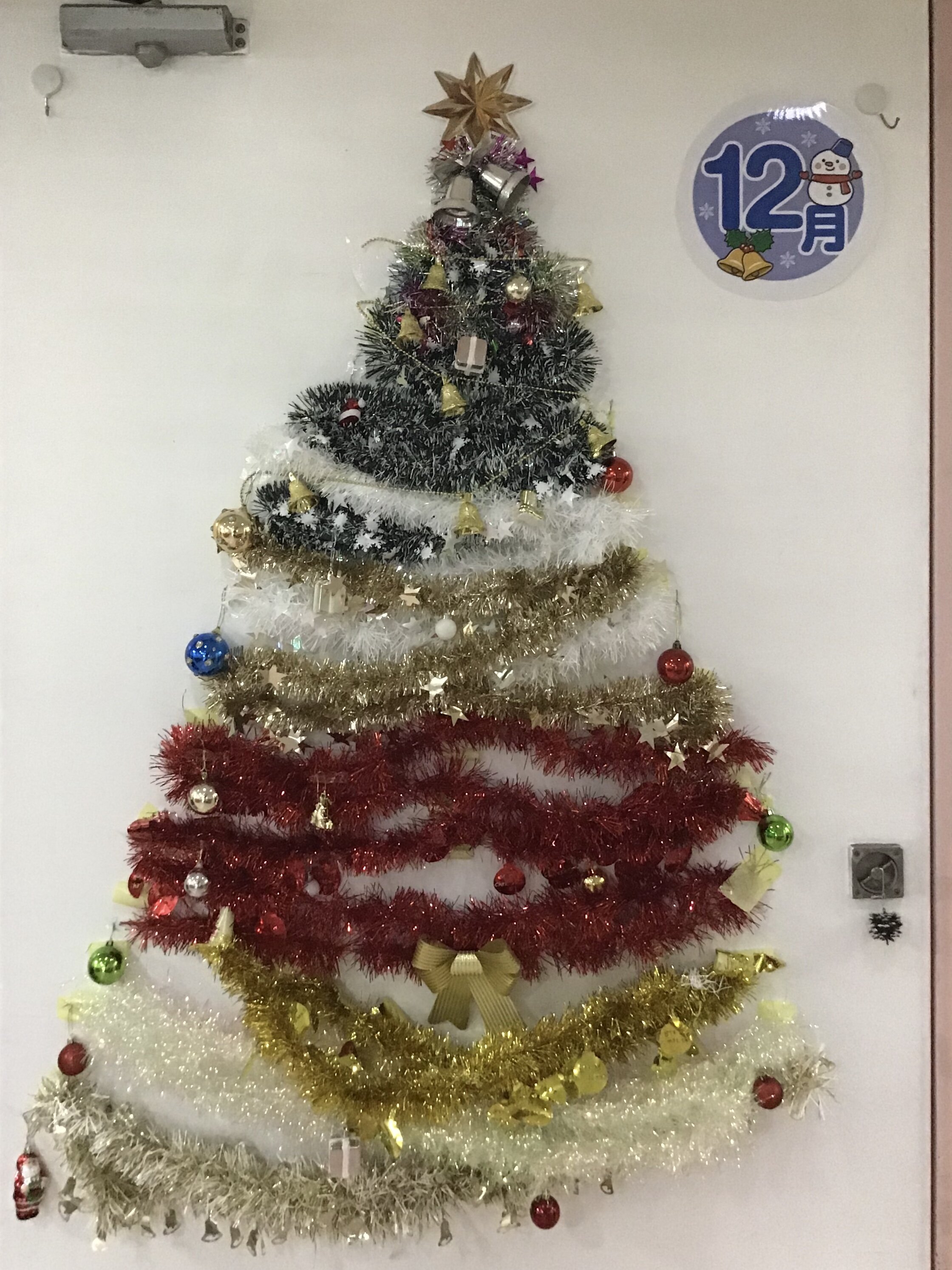 2号館では季節感を味わって頂くため職員お手製のツリーを作成しました(*´▽`*)