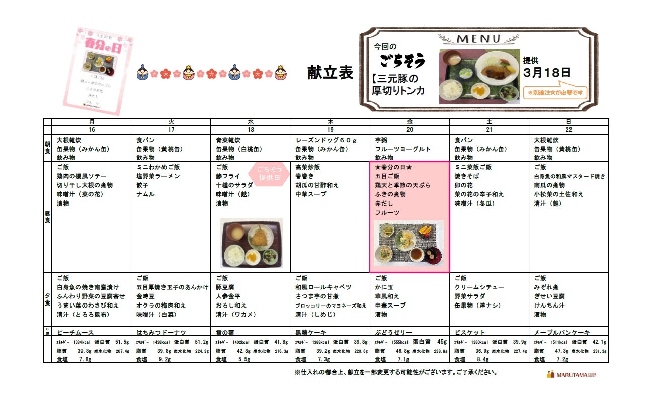 3月20日は春分の日ということで特別メニューが振舞われます(/・ω・)/