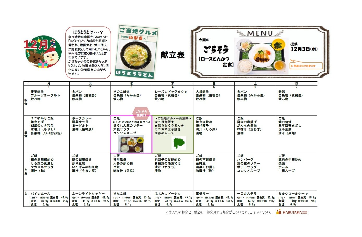 12月1日から7日からの献立をご紹介いたします(*'ω'*)