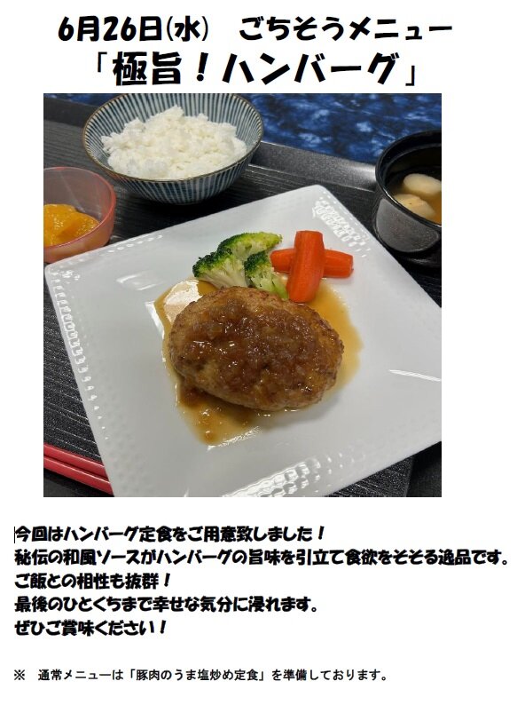 今回の6月12日のごちそうメニューはこちら。