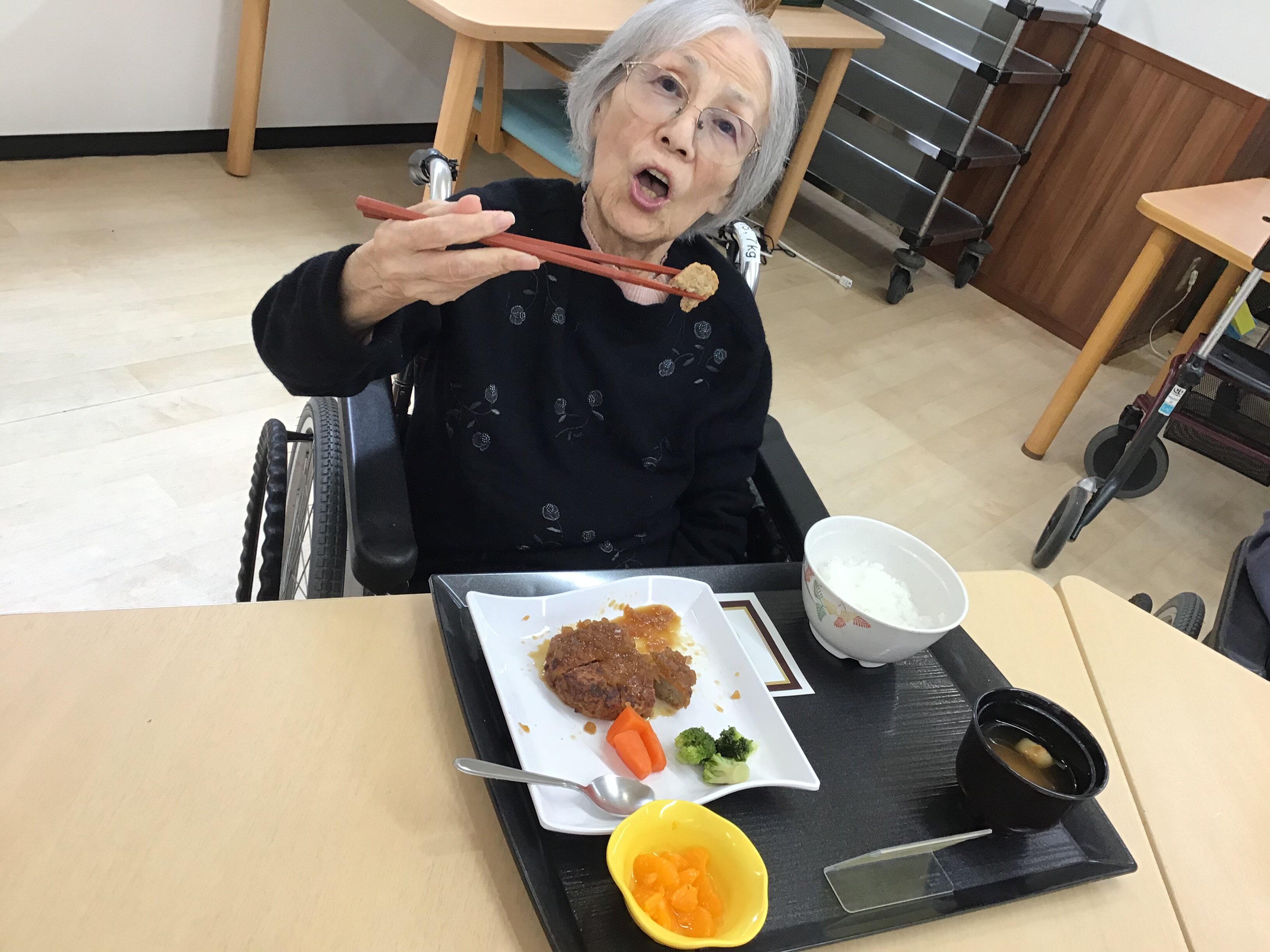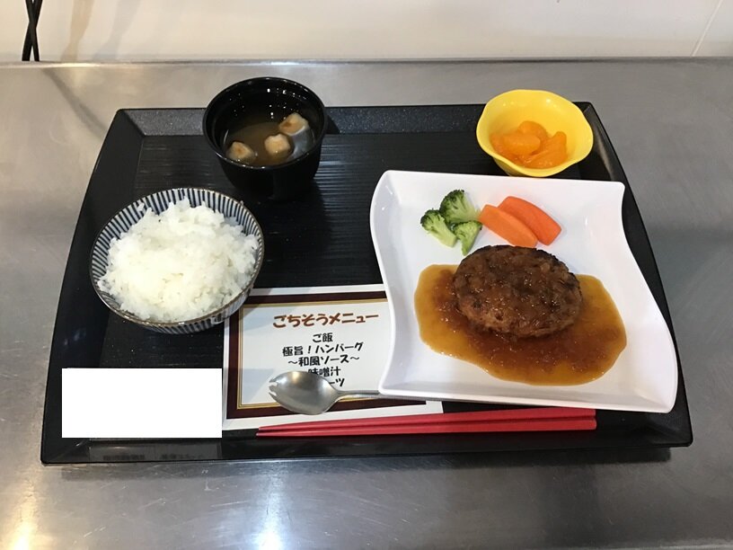 26日にごちそうメニューとしてハンバーグ定食が振舞われました!