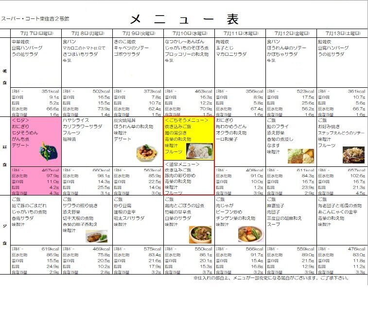 7月7日から7月13日の献立表をご紹介致します('ω')ノ