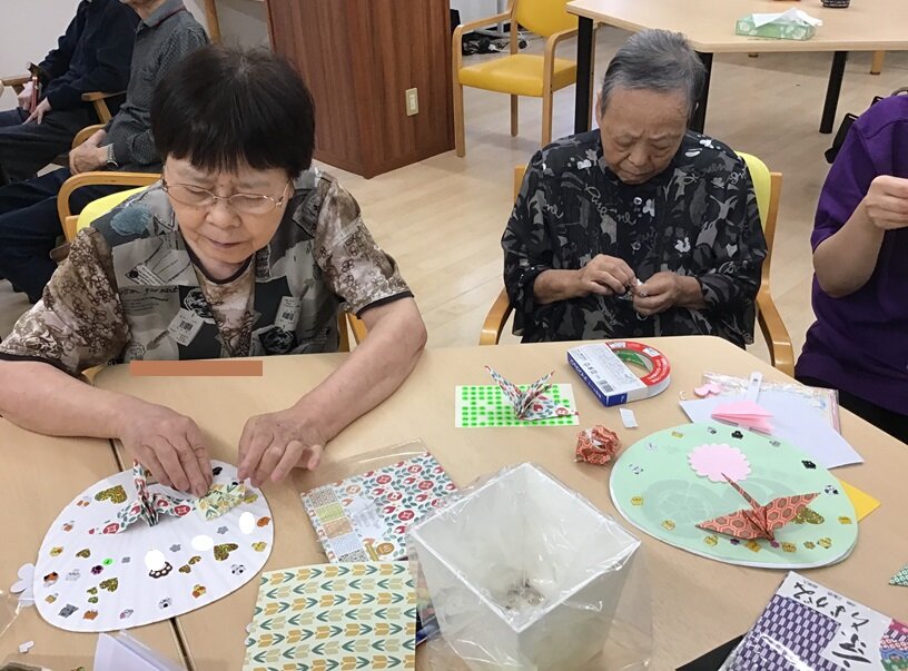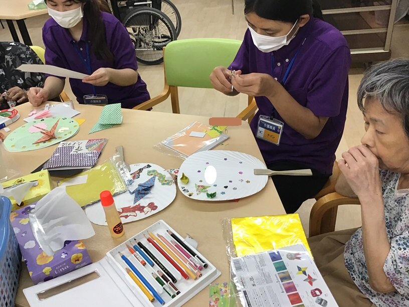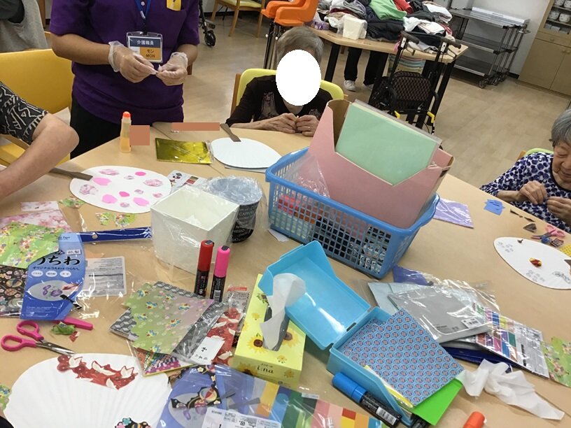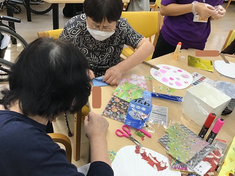 今日のレクリエーションで手づくりうちわを作成しました~♪