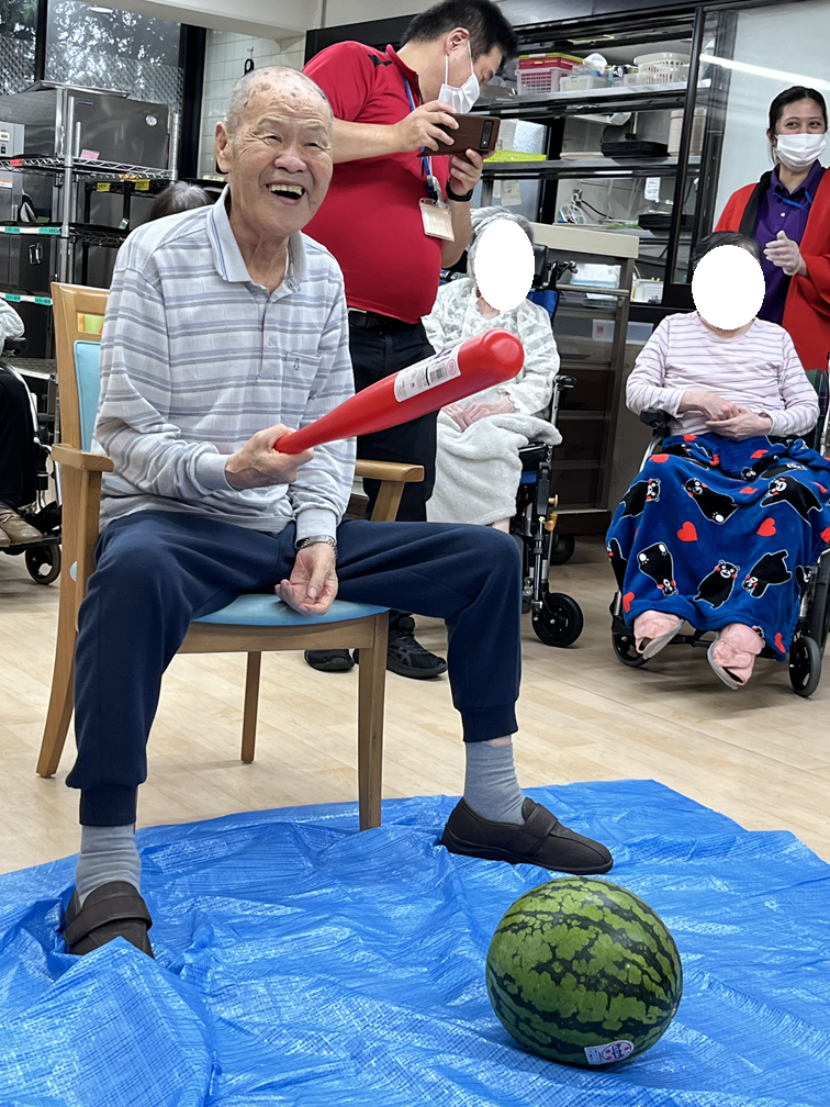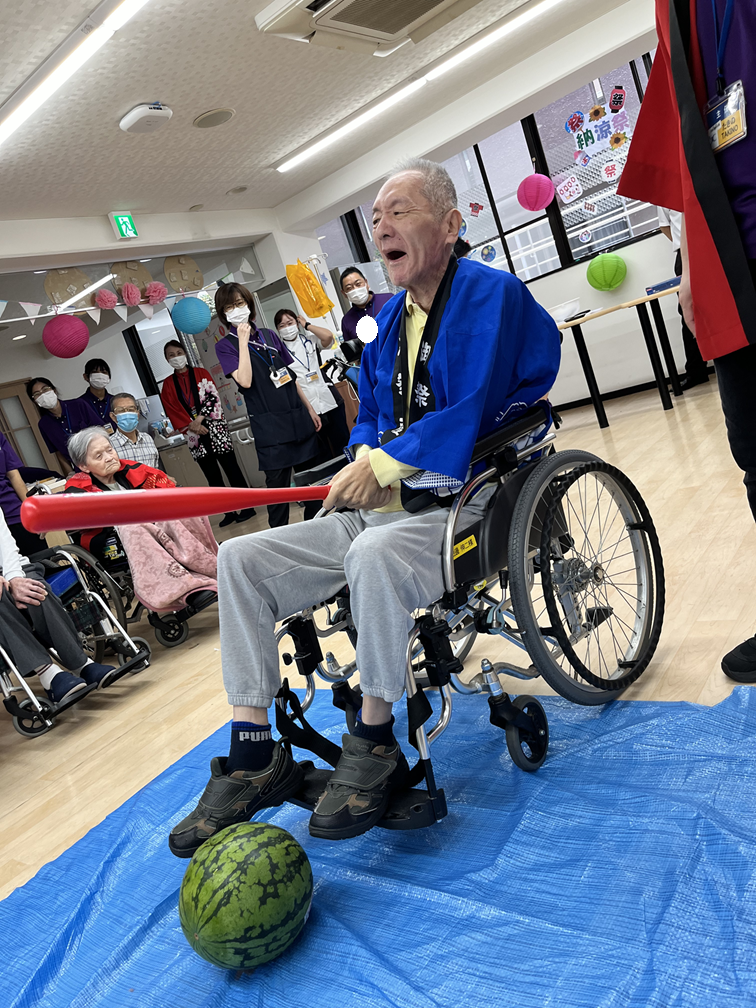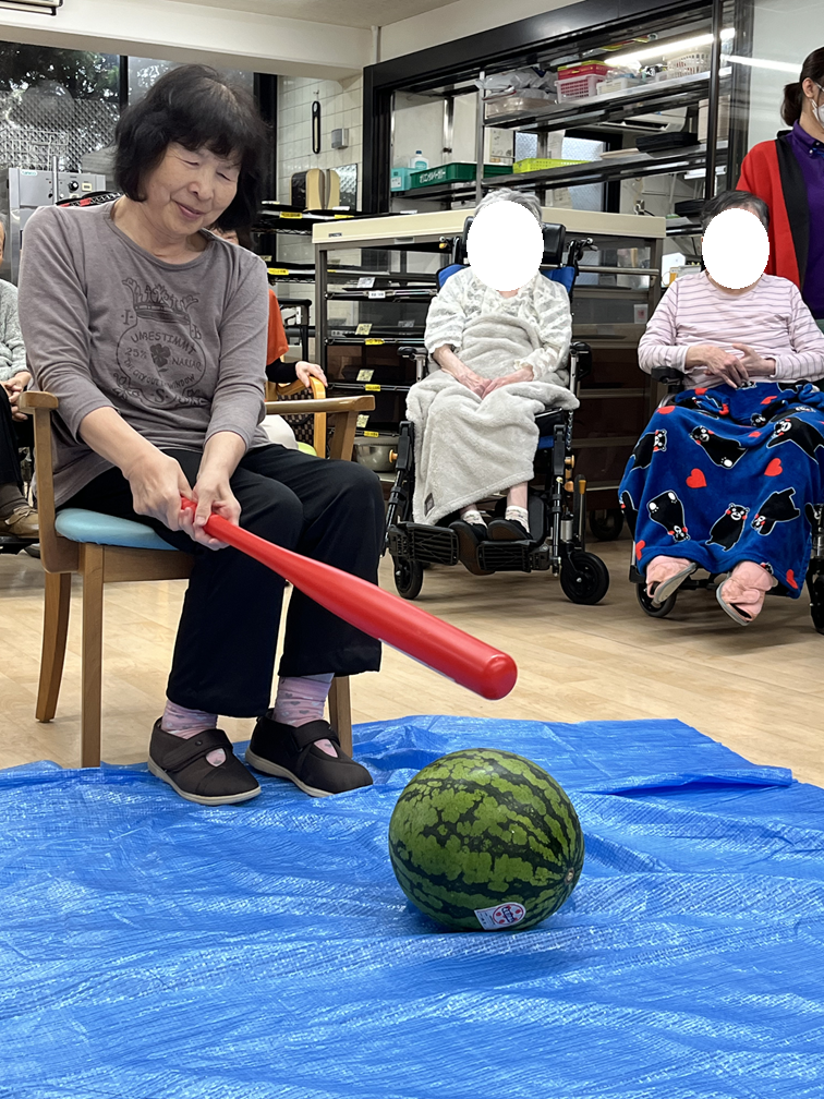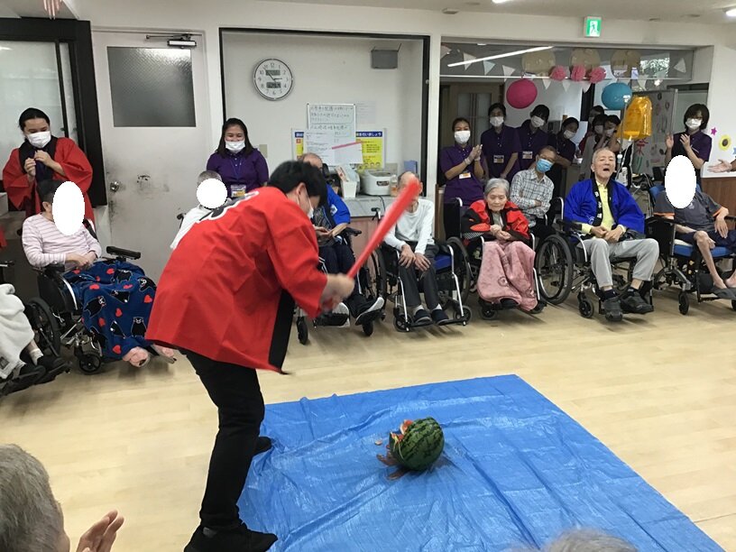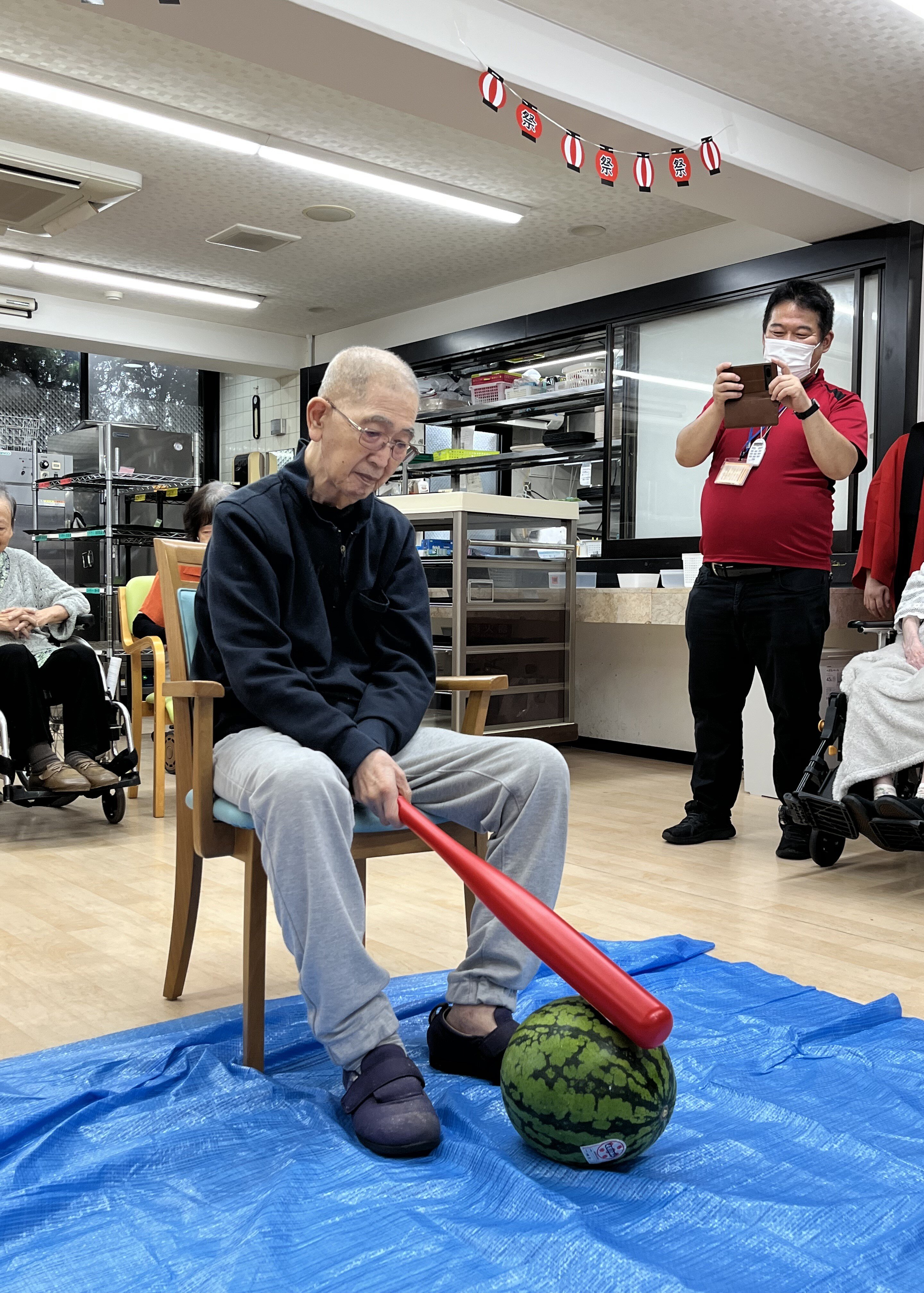 ご入居者のみなさまにスイカわりに挑戦していただき大盛り上がりのイベントになりました!(^^)!