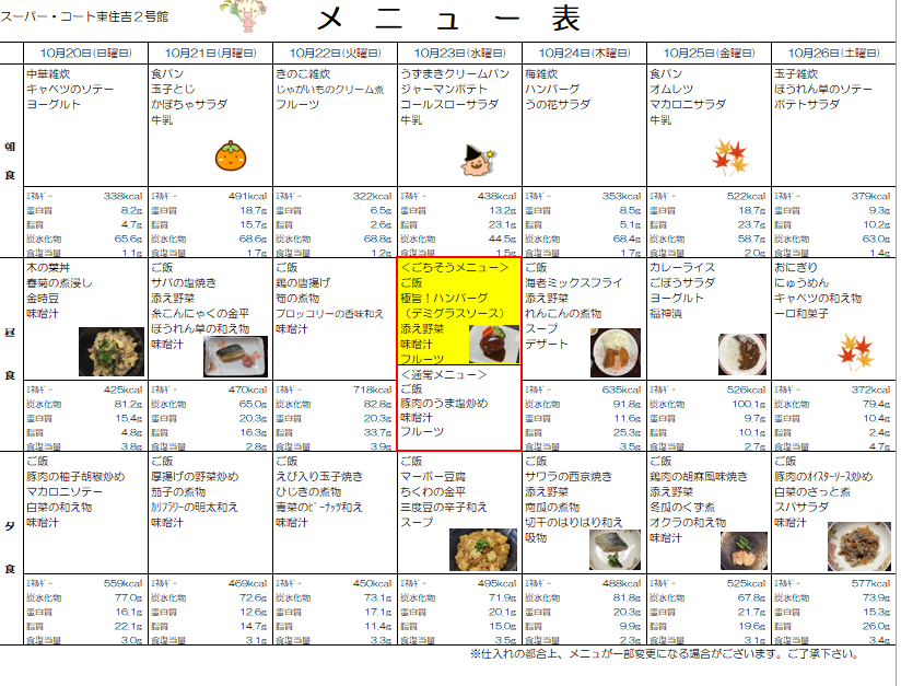 10月31日はハロウィンなのでパンプキンシチューなど特別メニューが振舞われます♪