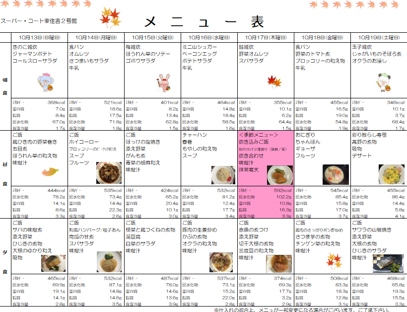 10月13日~10月19日までの献立をご紹介致します(@^^)/