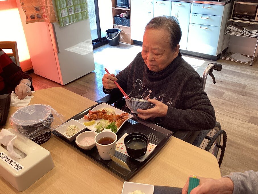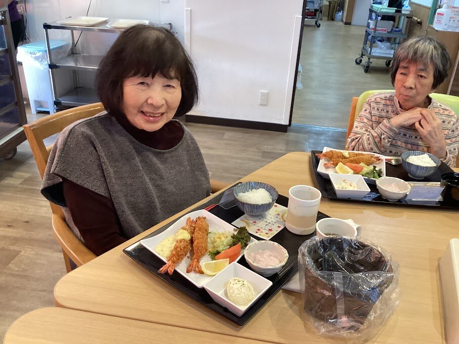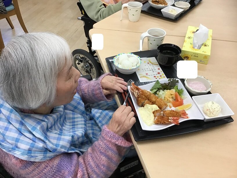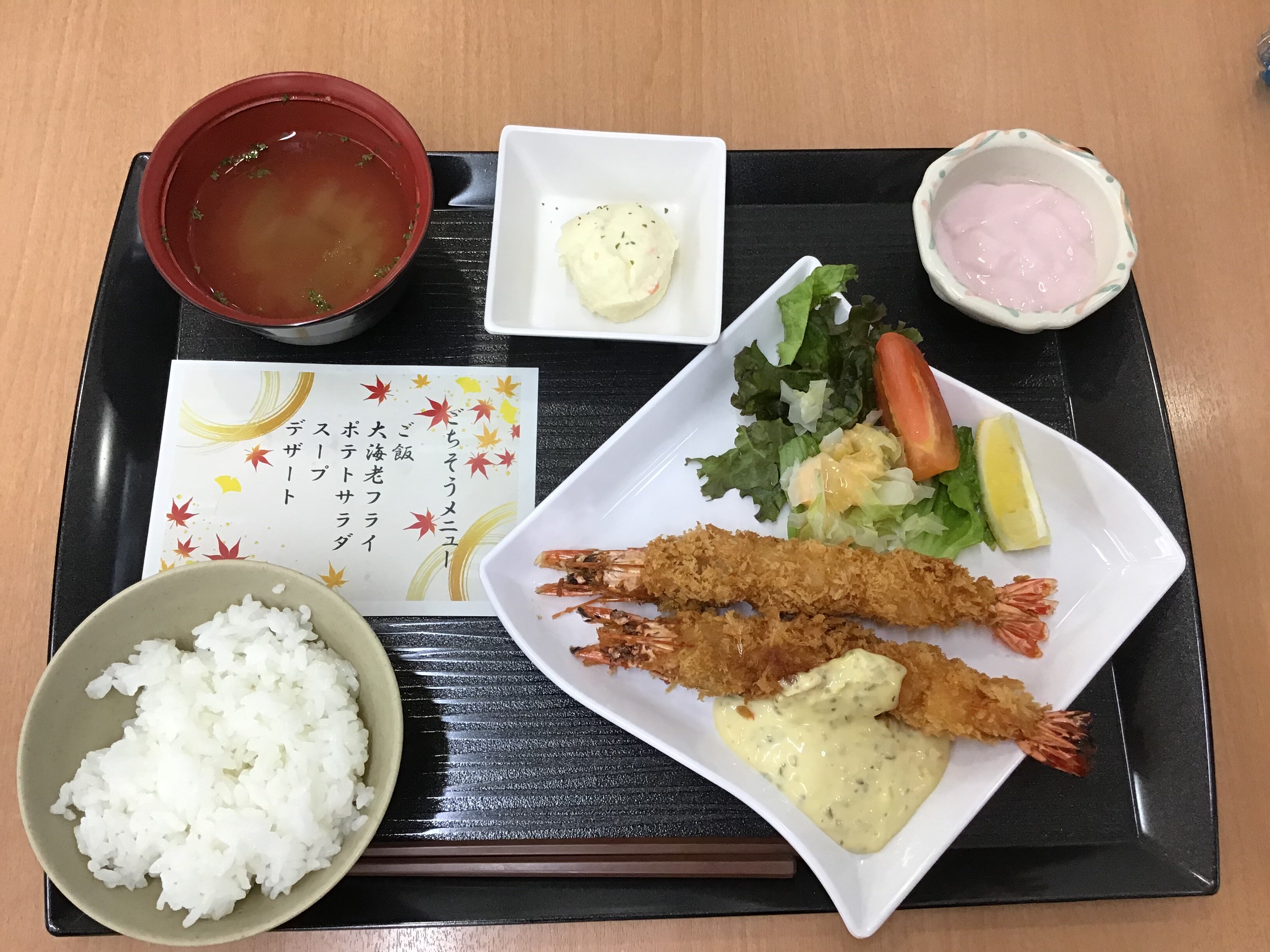 11月13日にごちそうメニューとして「大エビフライ定食」が振舞われました♪