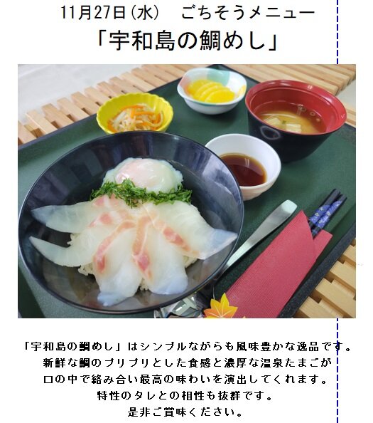 11月27日にごちそうメニューとして「宇和島の鯛めし」が振舞われます♪