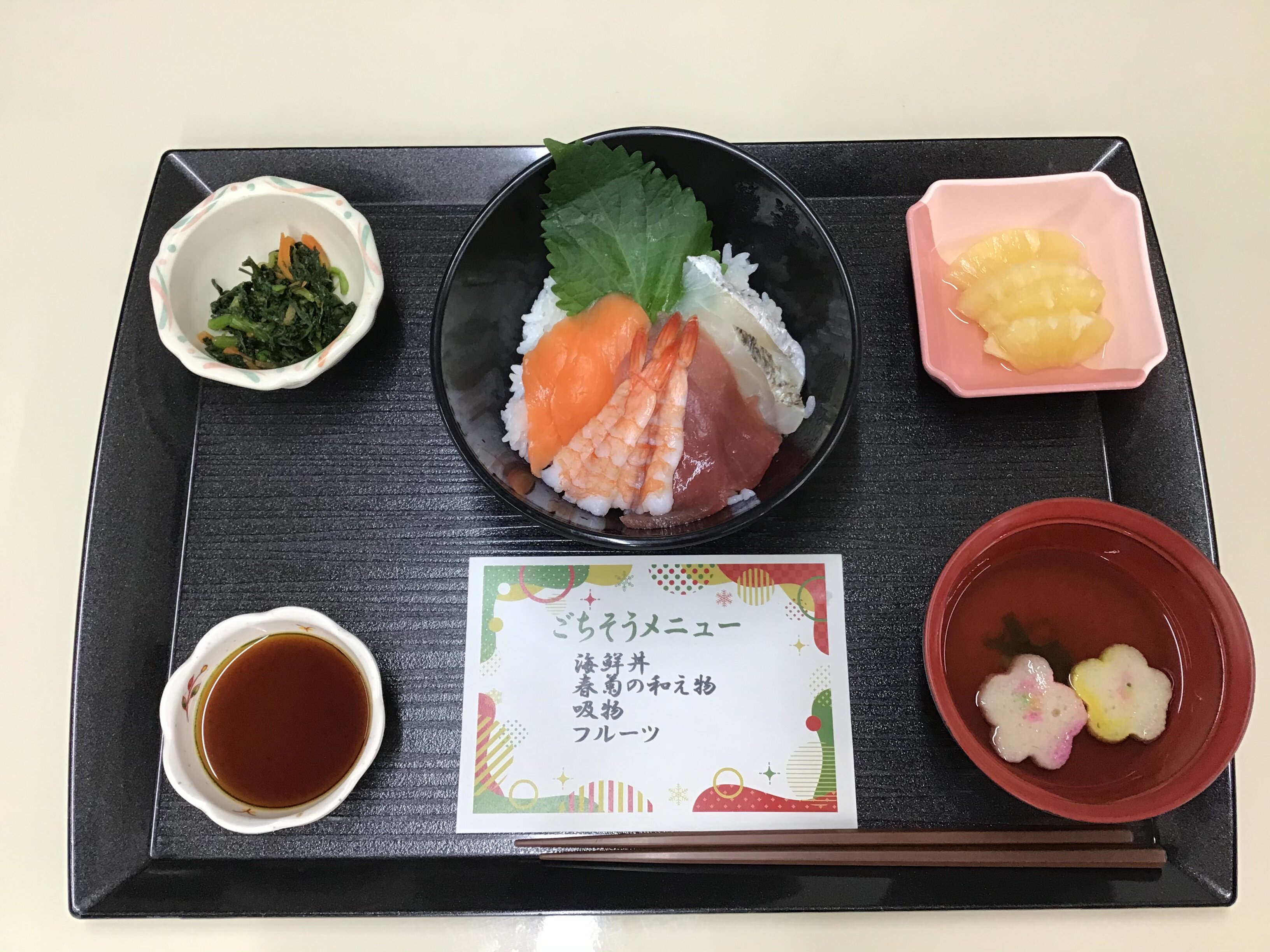 12月25日にごちそうメニューとして「海鮮丼」が振舞われました(/・ω・)/