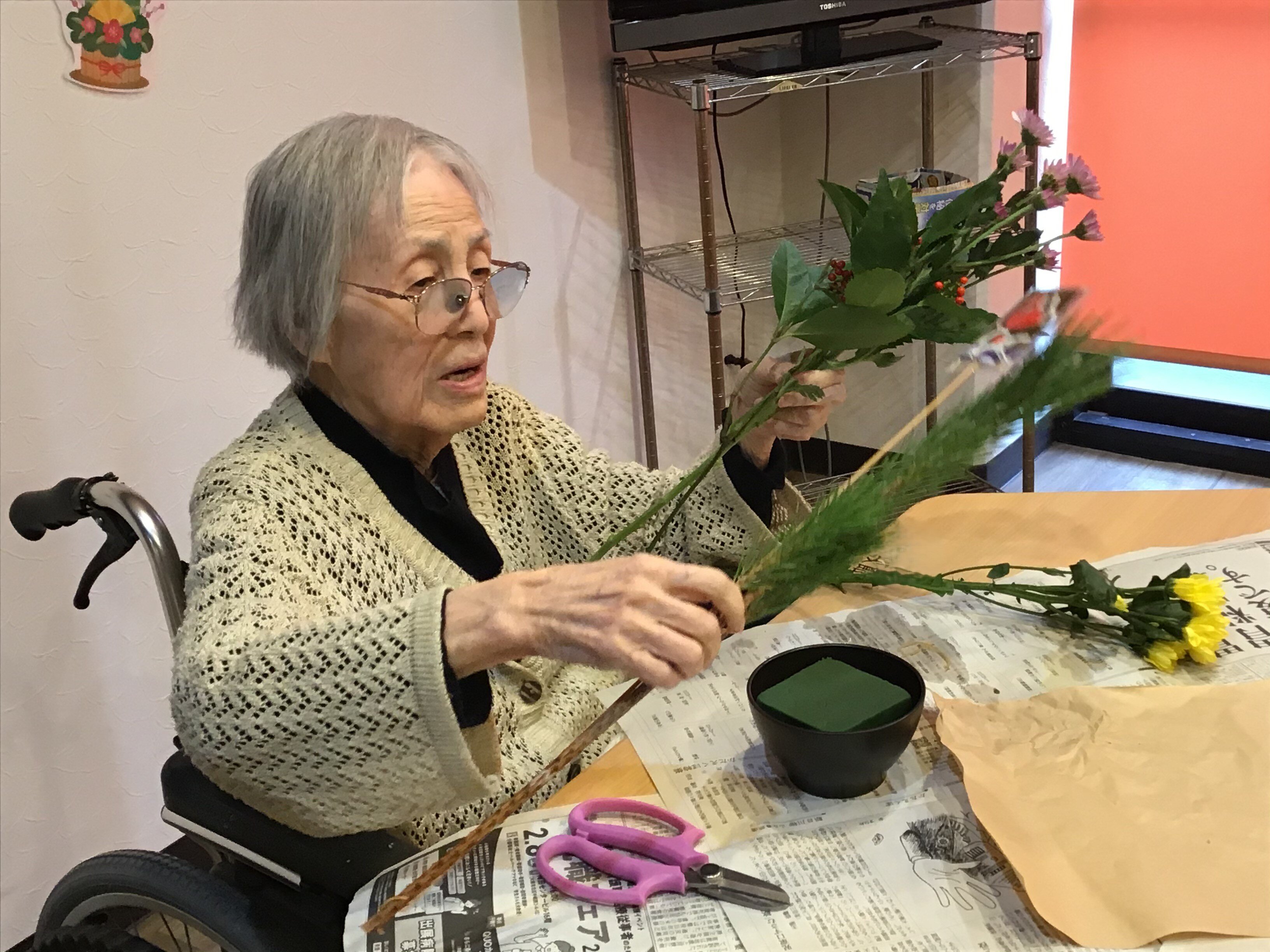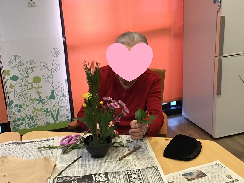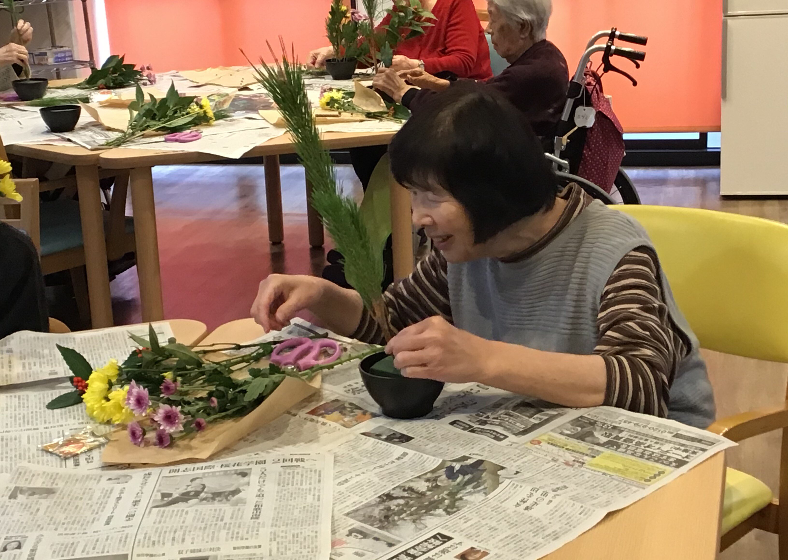 生け花レクとしてご入居者のみなさまに生け花に挑戦していただきました('ω')ノ