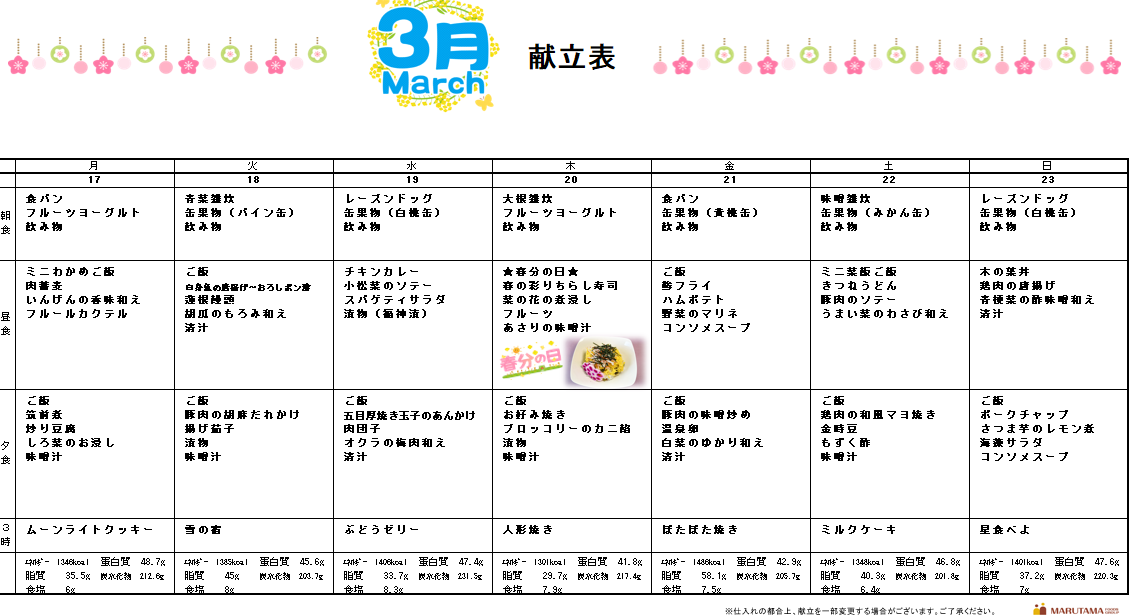3月17日から3月23日までの献立をご紹介いたします(・ω・)