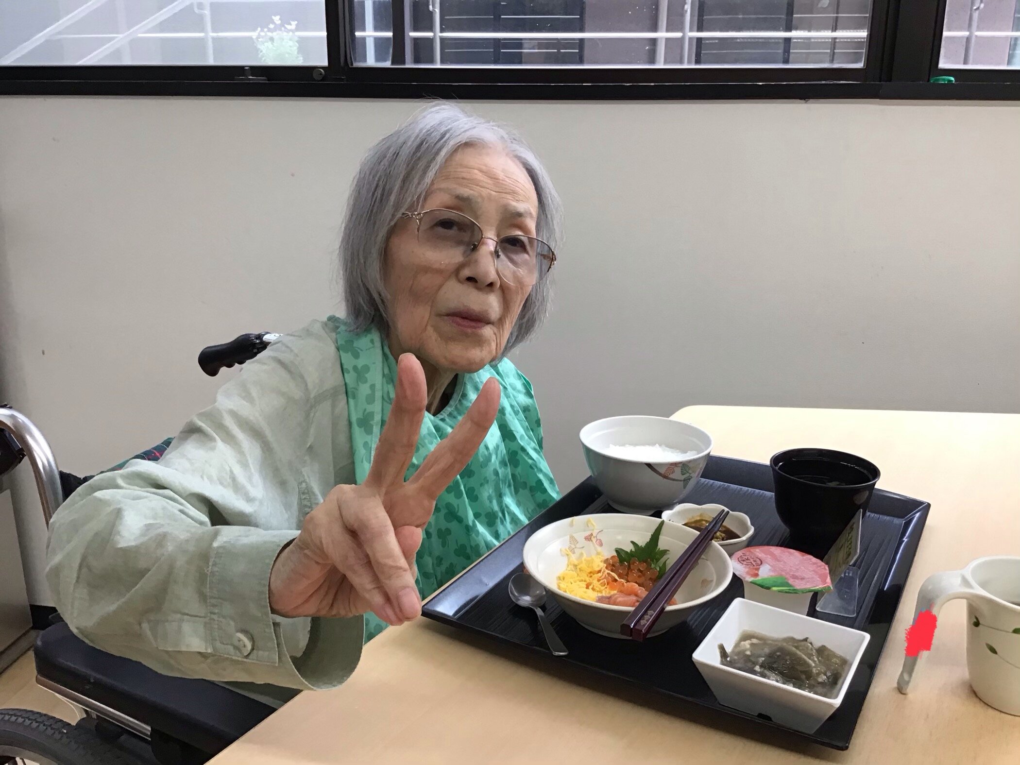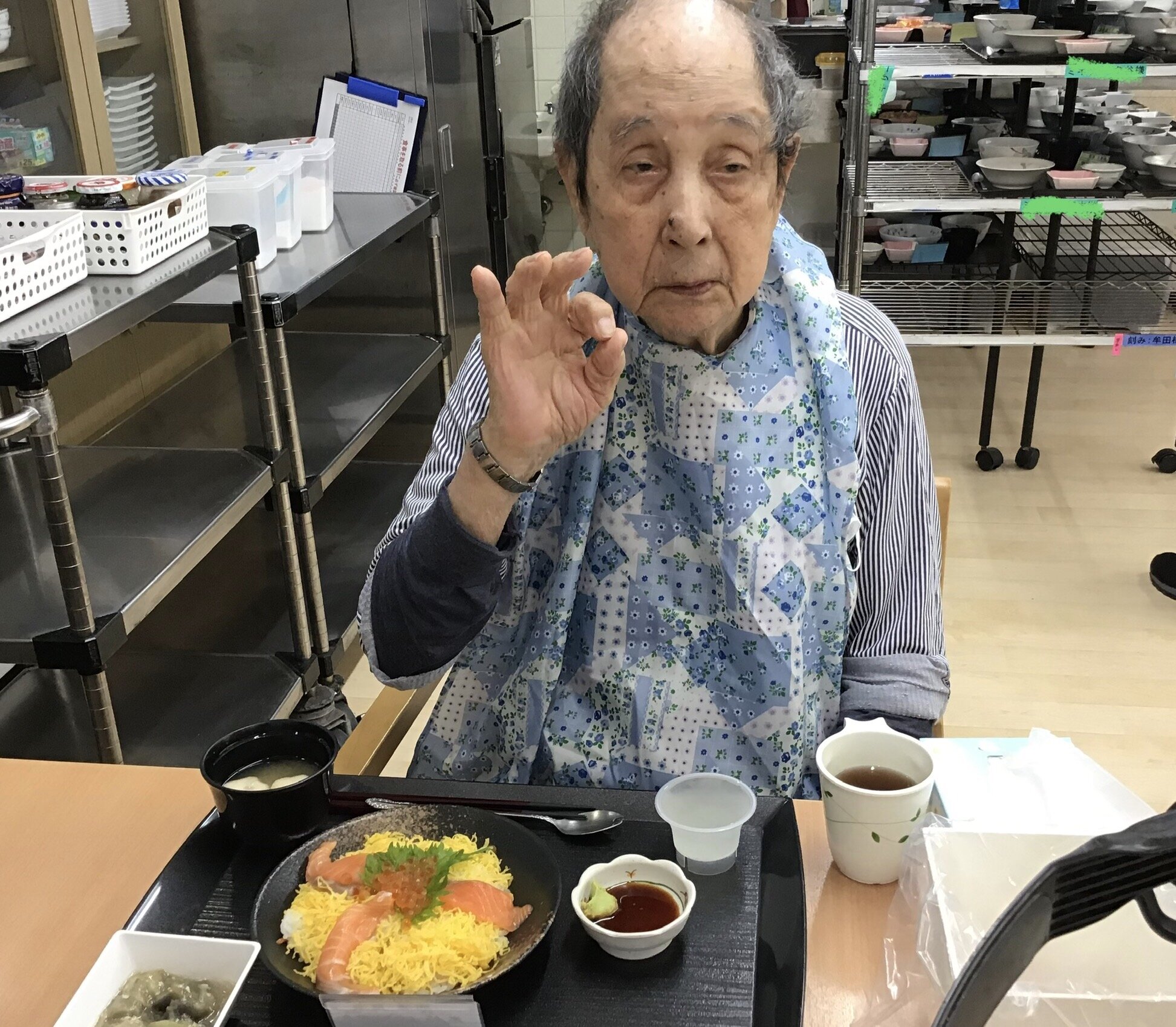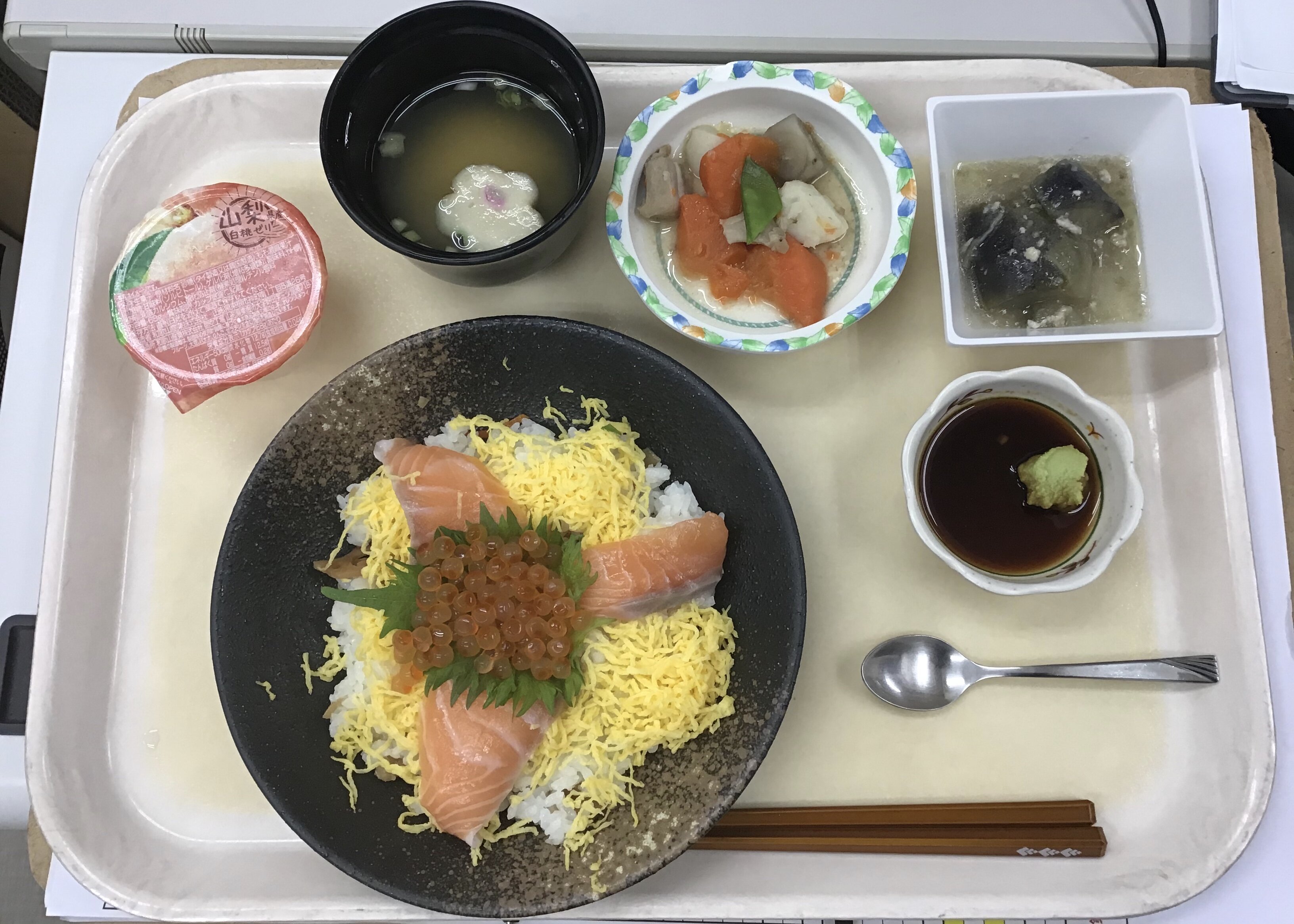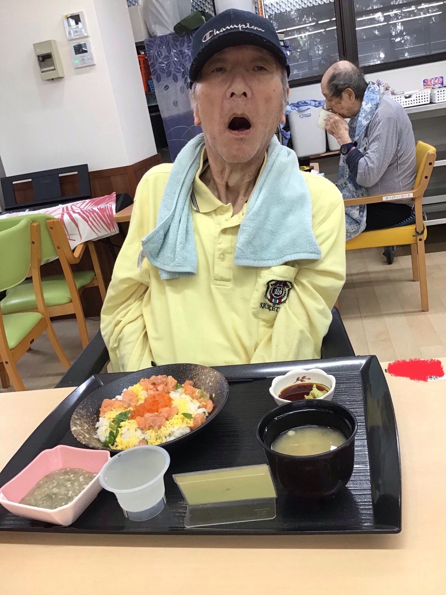 4月23日にごちそうメニューとして「サーモン親子ちらし寿司」が振舞われました!(^^)!