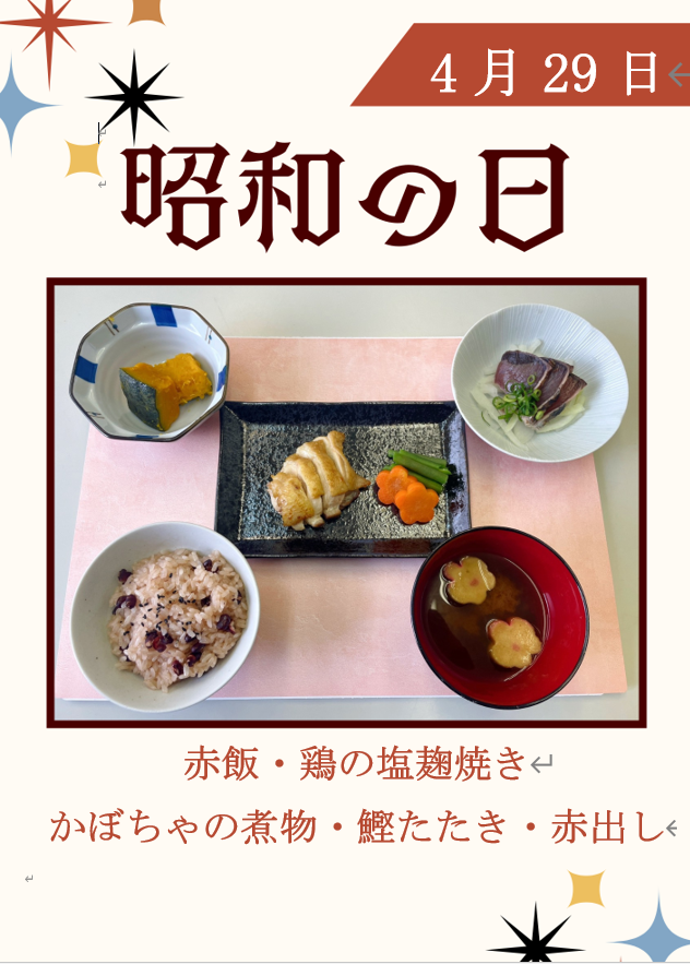 4月29日は昭和の日ということで特別メニューが振舞われます(*^^*)