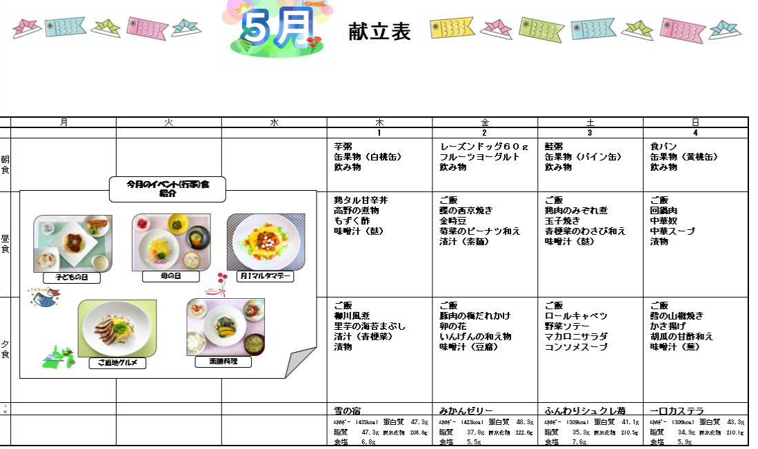5月1日からの献立をご紹介いたします(*'ω'*)
