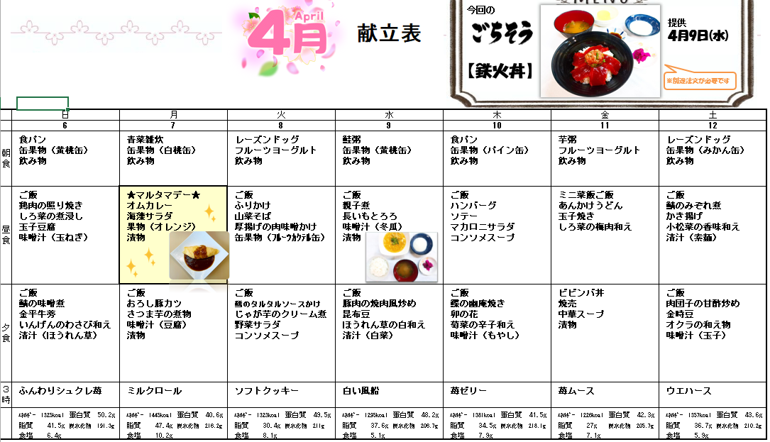 4月6日から4月12日までの献立をご紹介いたします!(^^)!