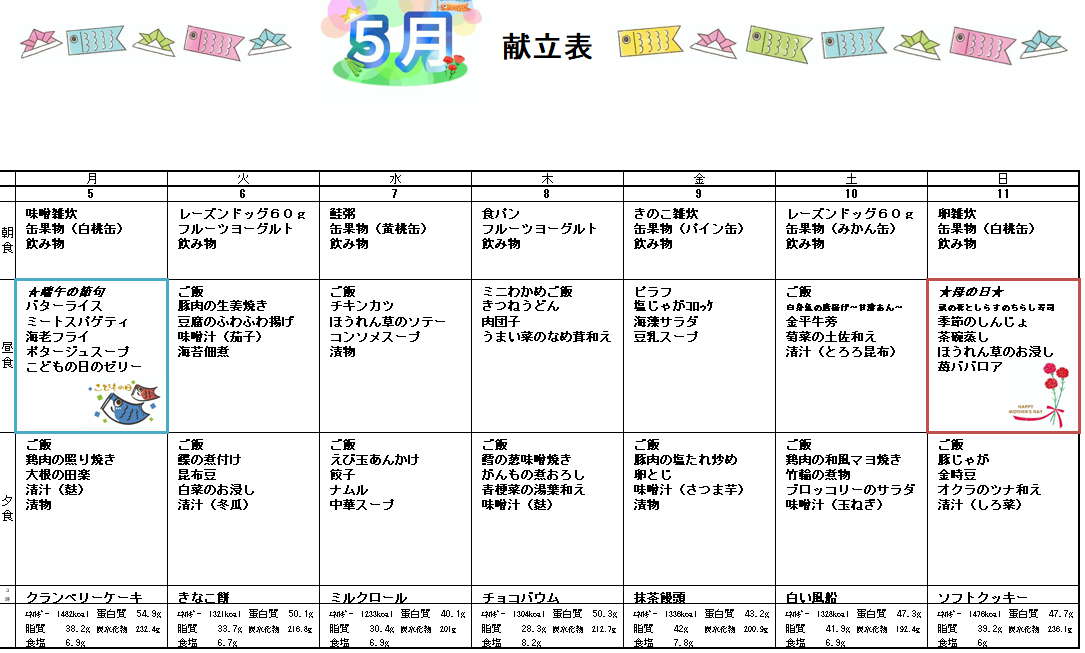 5月5日からの献立をご紹介いたします(*^^)v