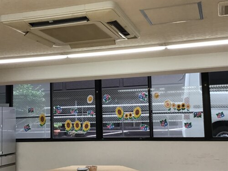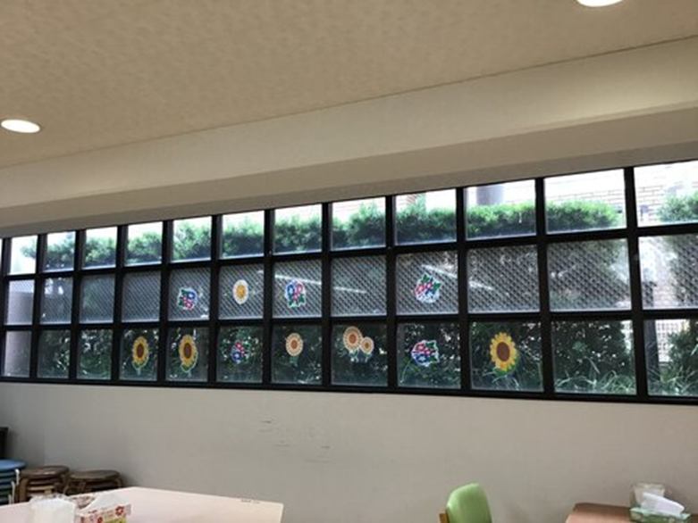 食堂にひまわりなど夏らしい飾りつけをしていました(=゚ω゚)ノ