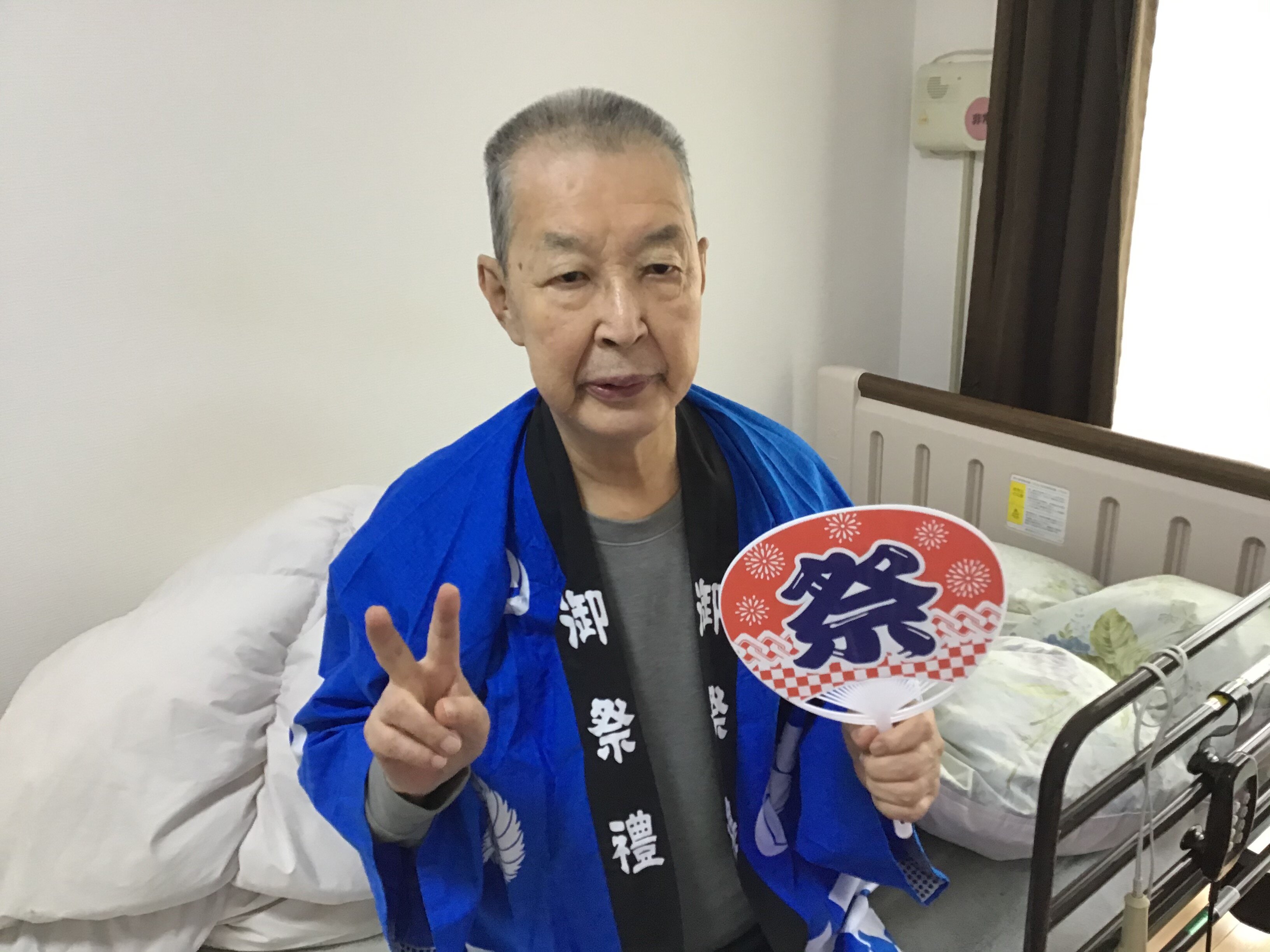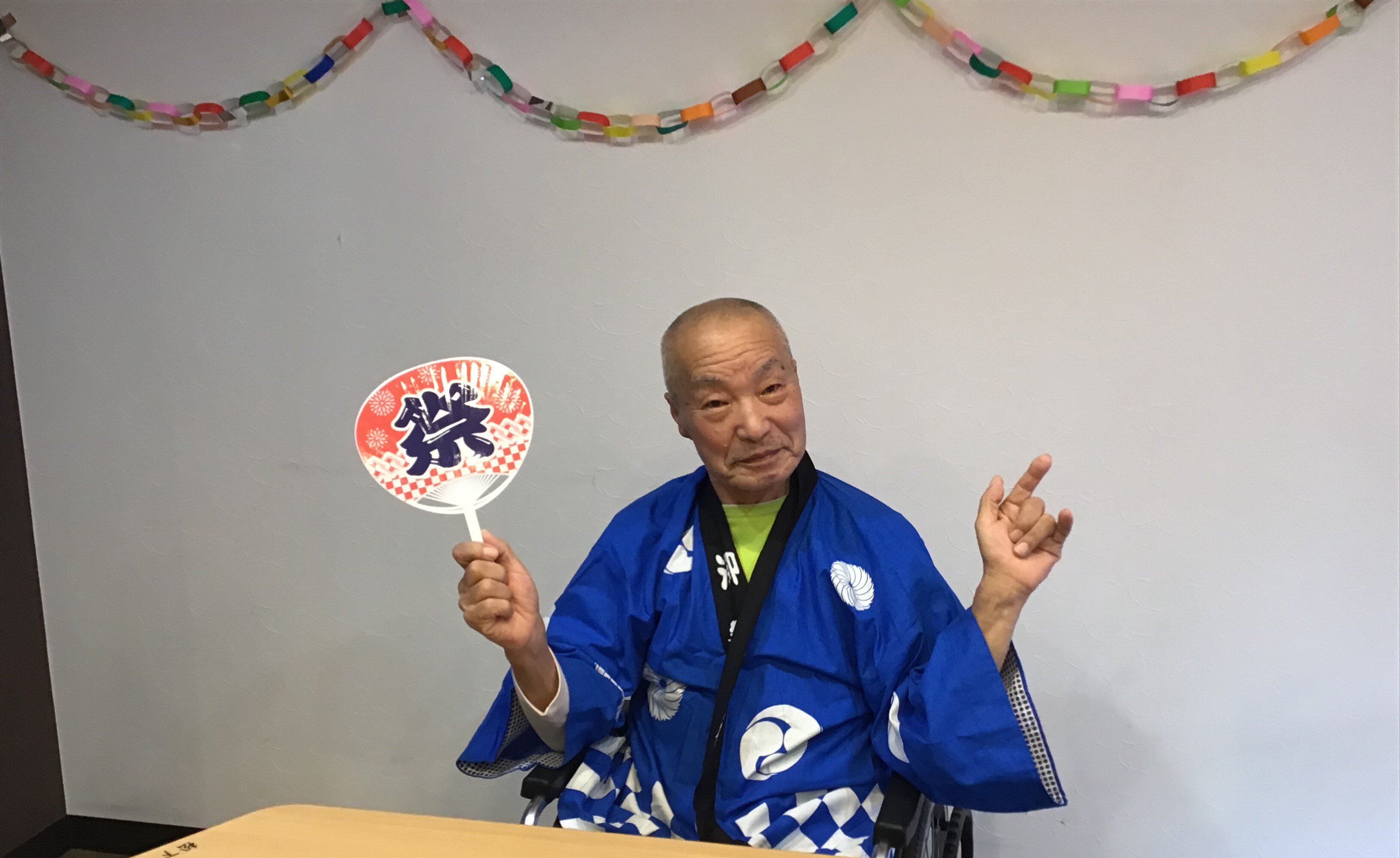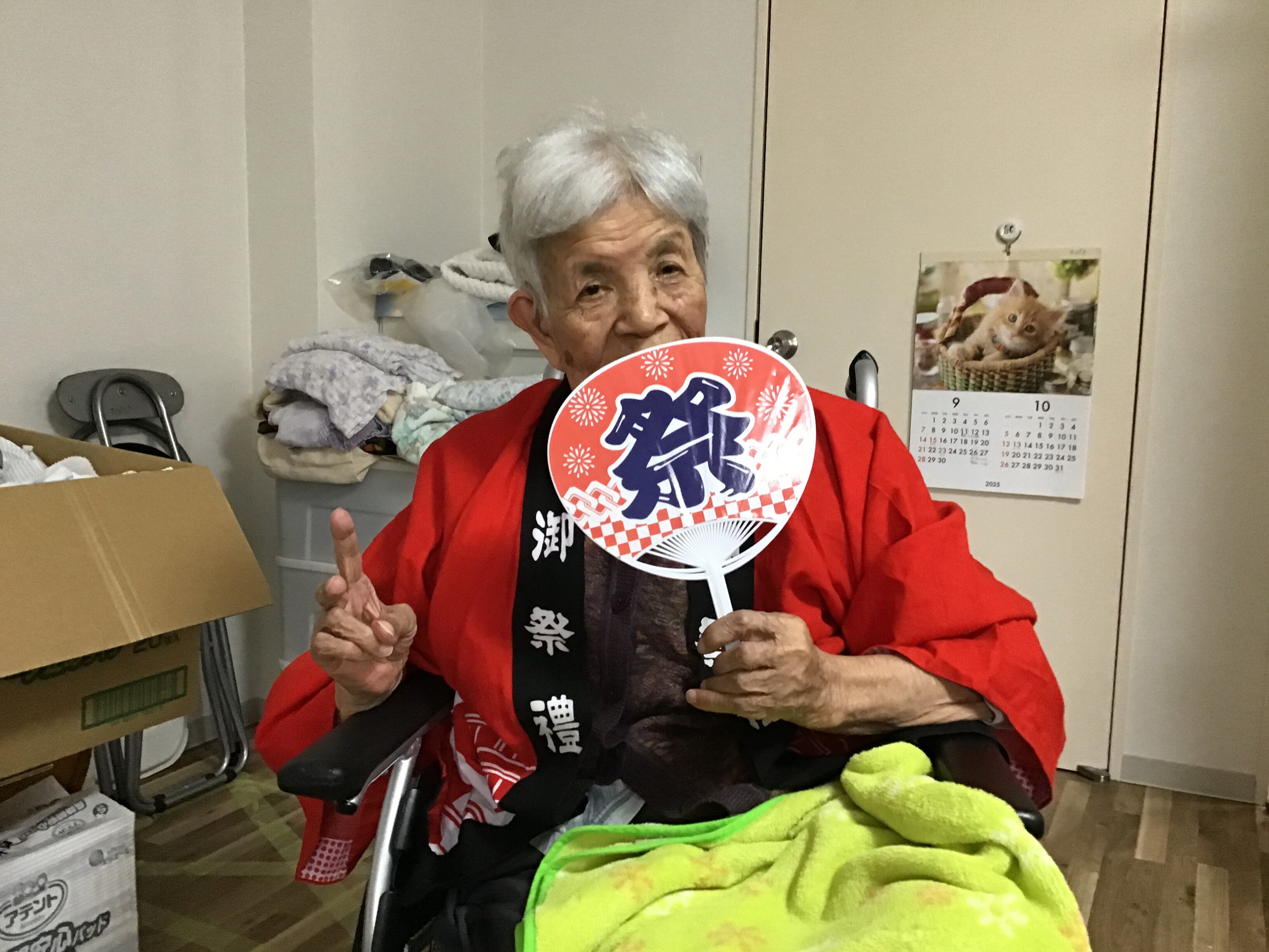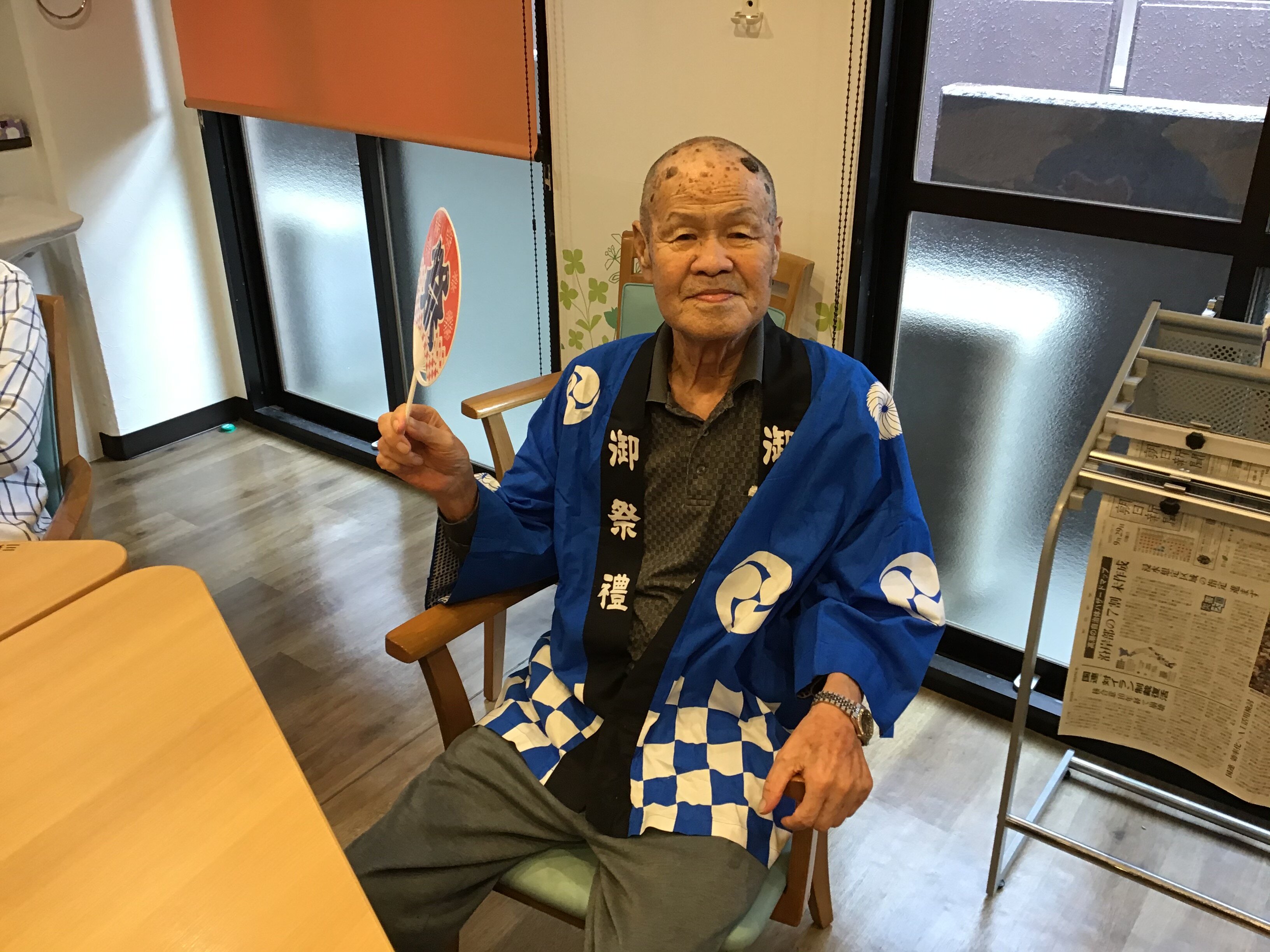 まずは気分を盛り上げる為に、ご入居者のみなさまにはっぴを着ていただきました!