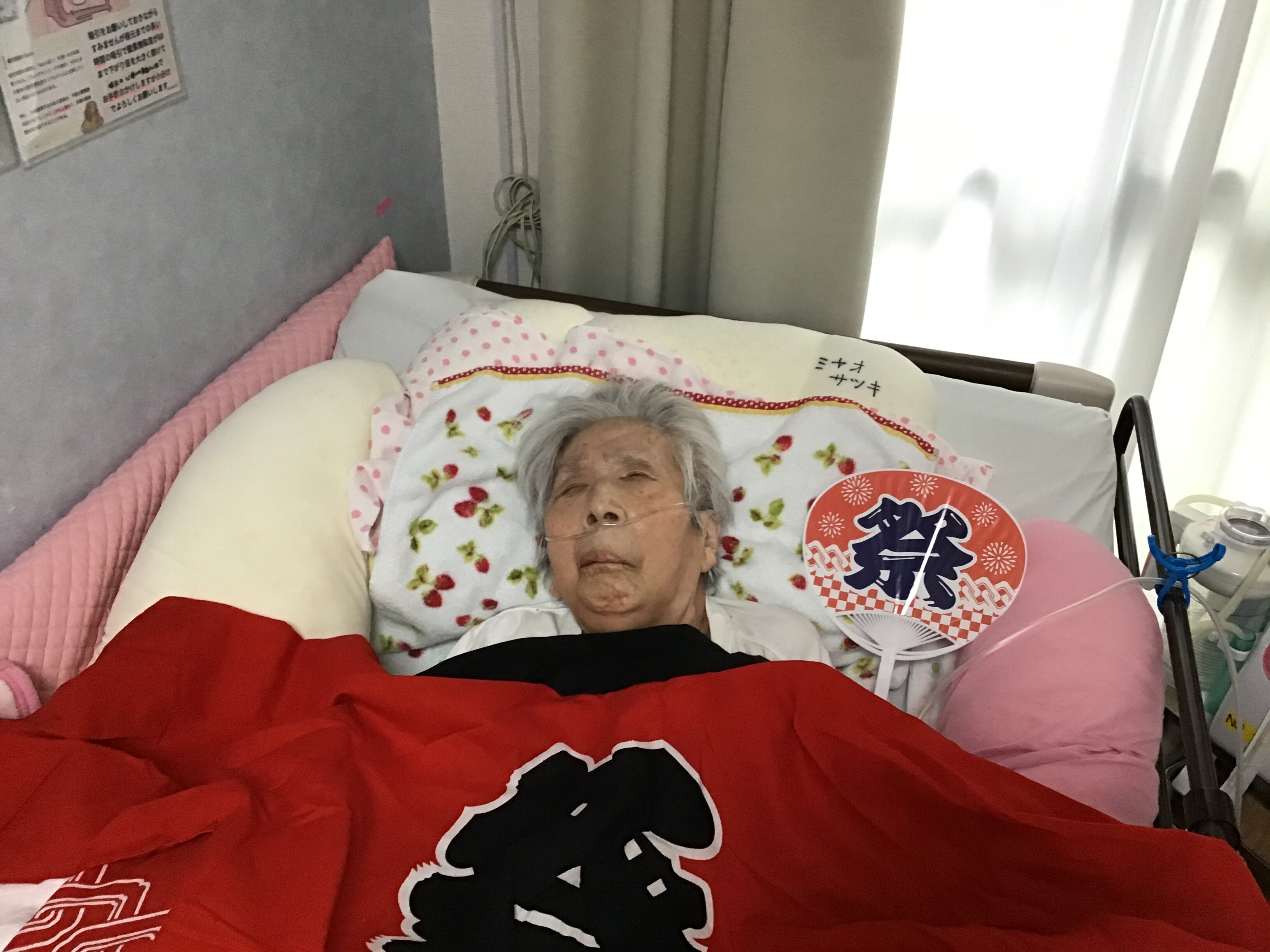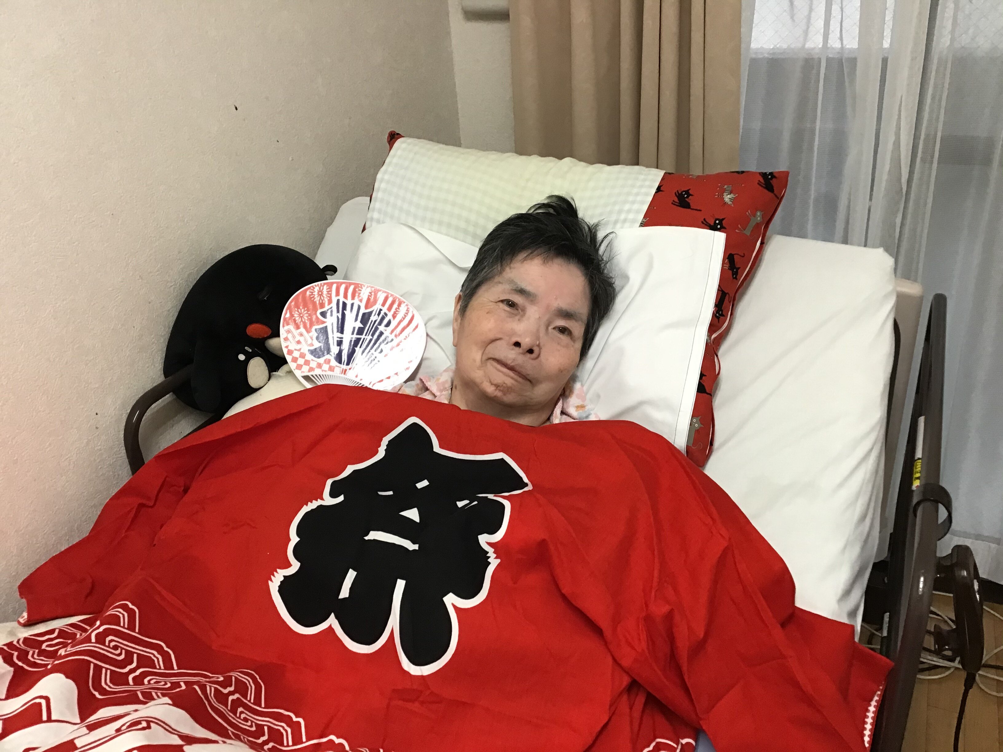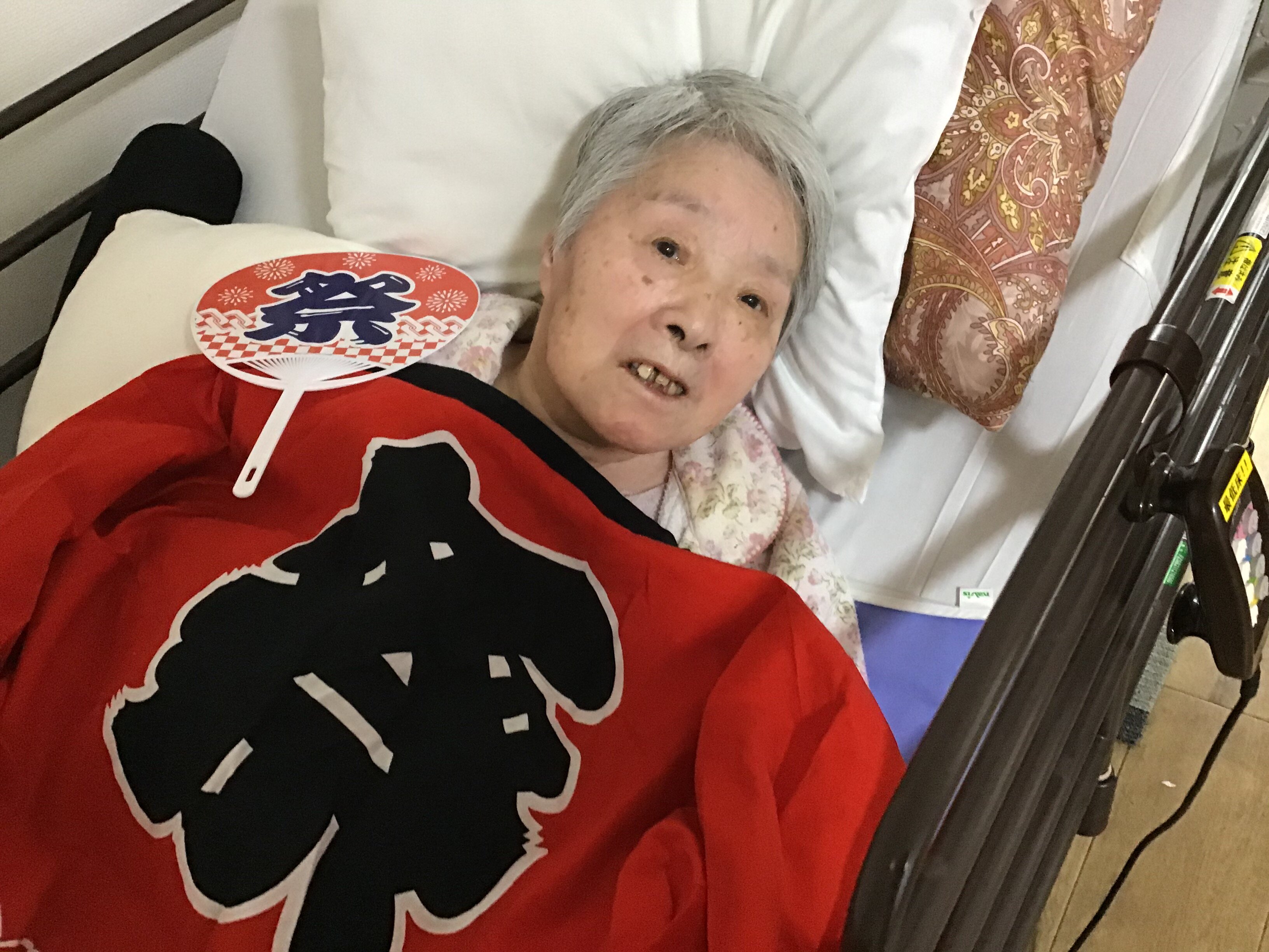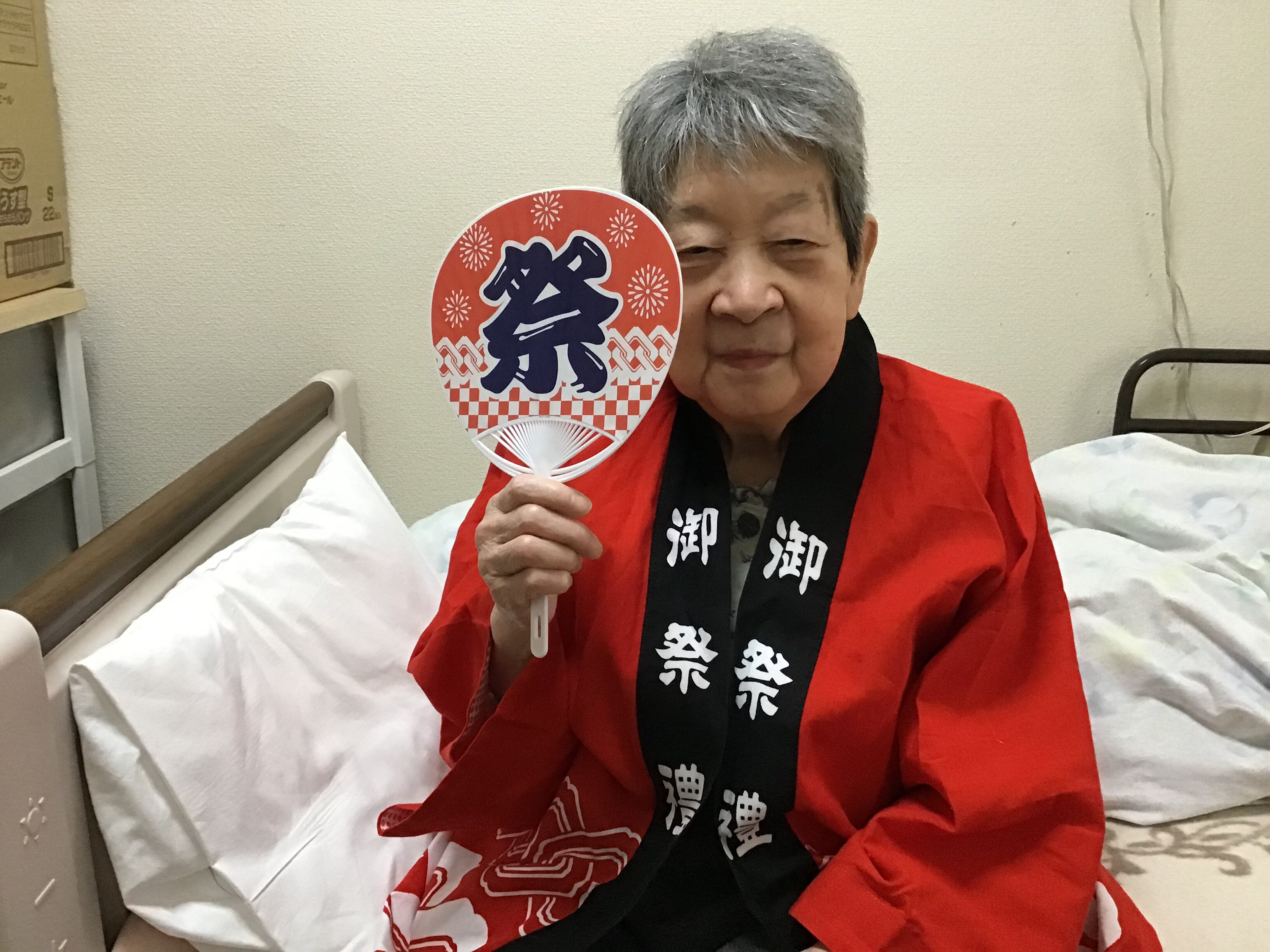 まずは気分を盛り上げる為に、ご入居者のみなさまにはっぴを着ていただきました!