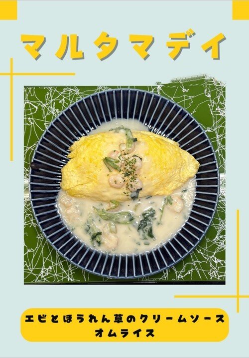 10月19日はマルタマデーとして「エビとほうれん草のクリームソースオムライス」が振舞われます♪