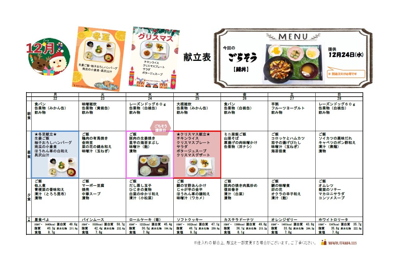 12月22日から28日までの献立をご紹介いたします(∩´∀`)∩