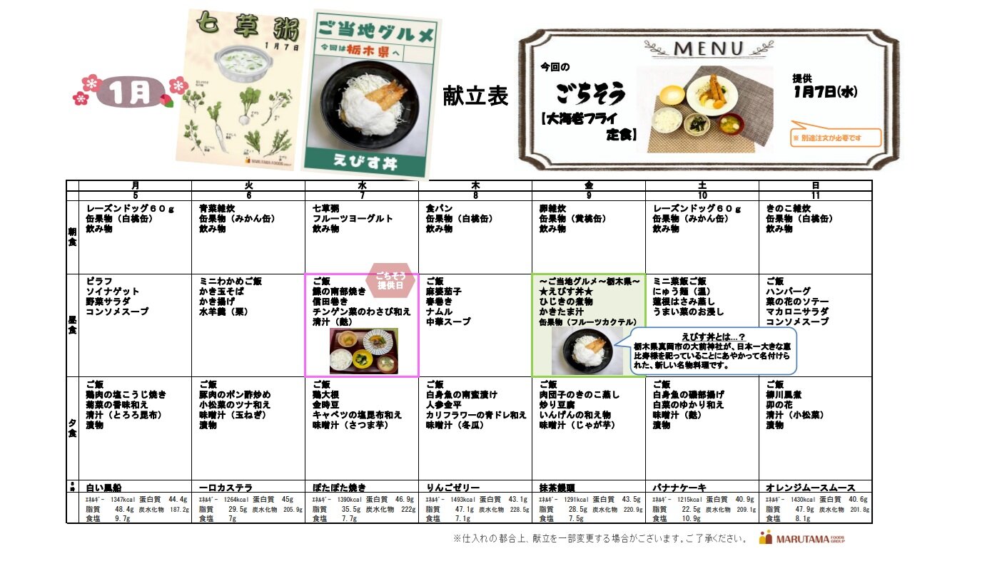 1月5日から11日までの献立をご紹介いたします(*´▽`*)