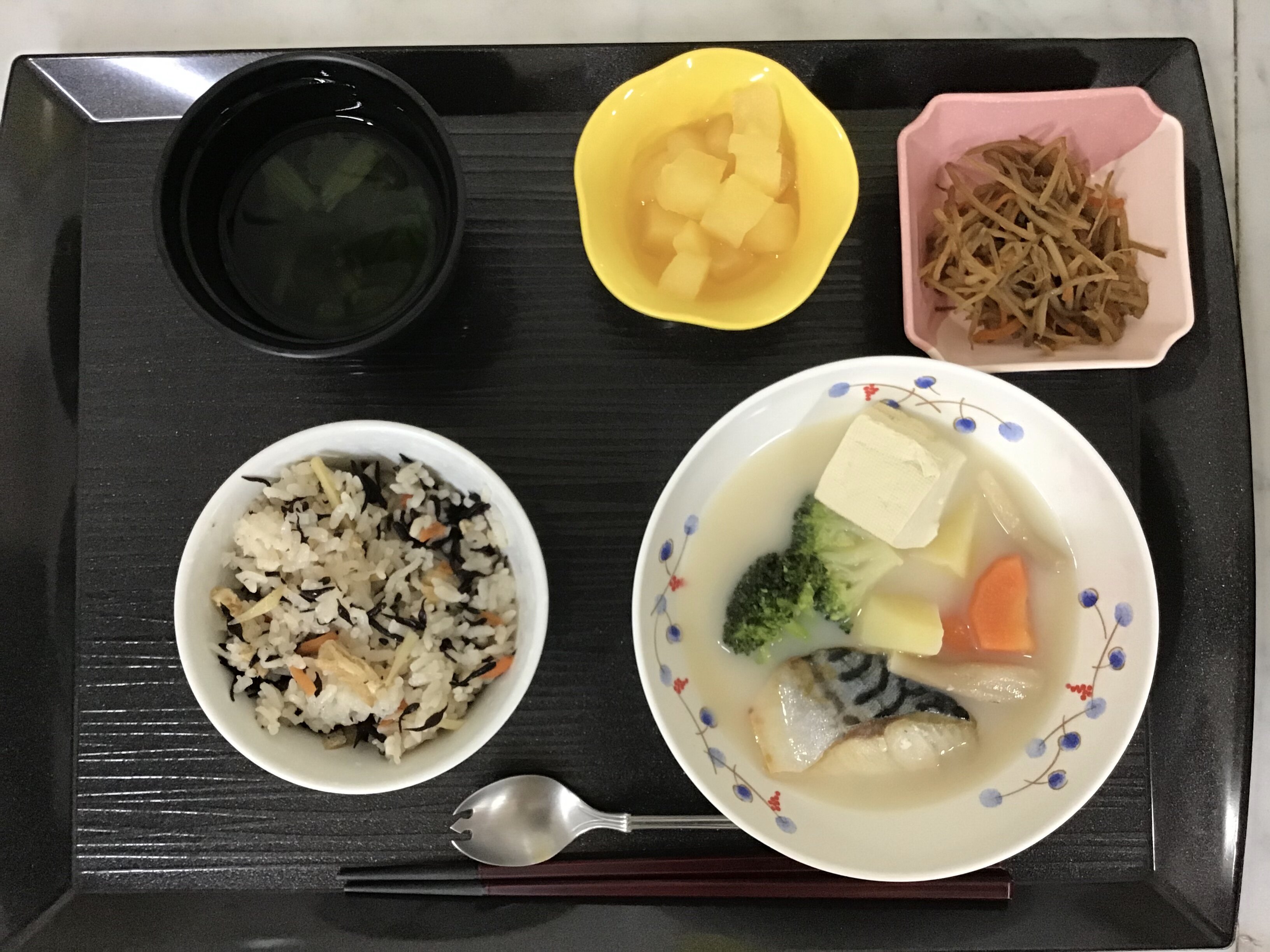 12月15日に薬膳ご飯として「生姜入りひじきごはん、鯖の酒粕鍋風」が振舞われました(^^♪
