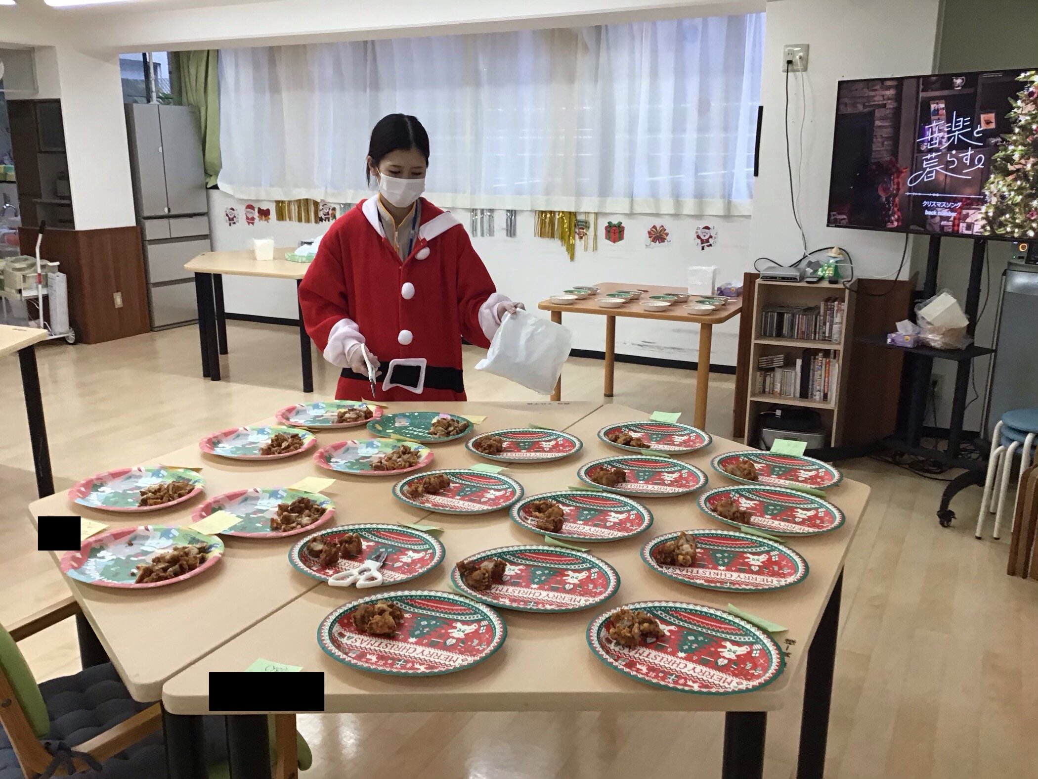 チキンやポテト、ピザなどクリスマスらしいメニューを召し上がっていただきました('ω')ノ