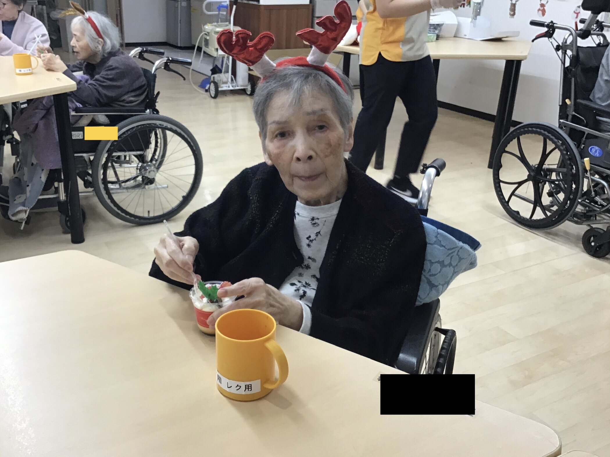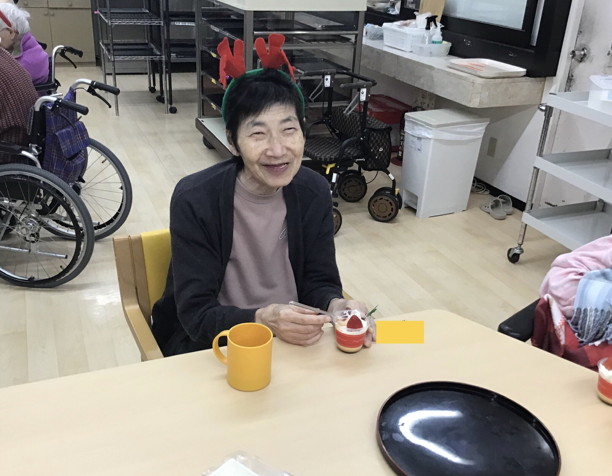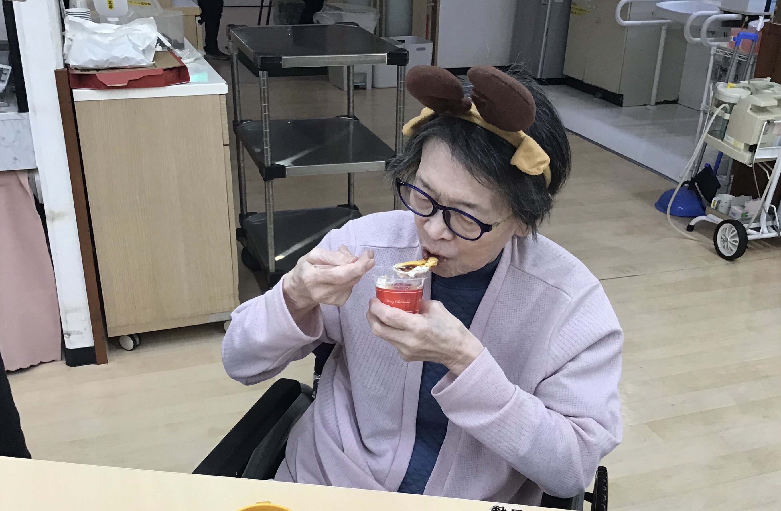 ピザなどを召し上がっていただいた後は、おやつとしてプリンカップを召し上がっていただきました~