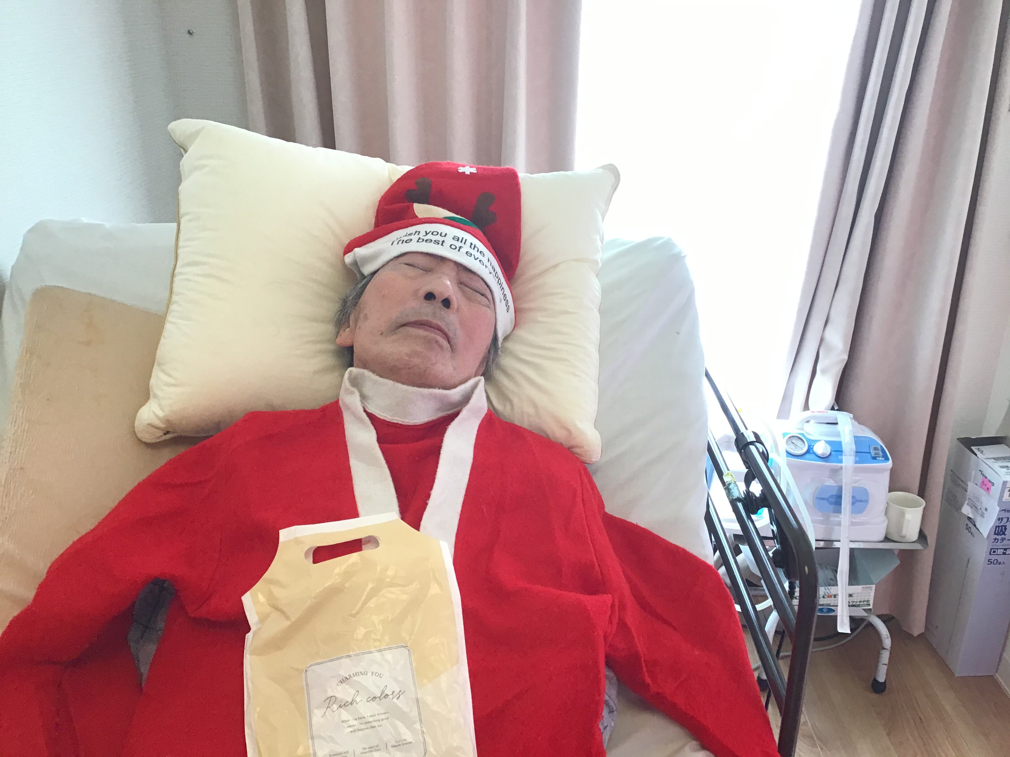 お部屋で過ごされている方々にもサンタの衣装を着て頂き、クリスマスプレゼントお渡しさせていただきました~