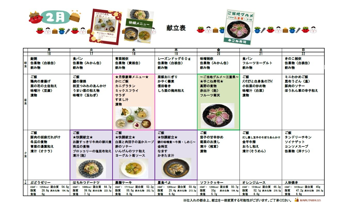 2月16日から22日までの献立をご紹介いたします(*ノωノ)