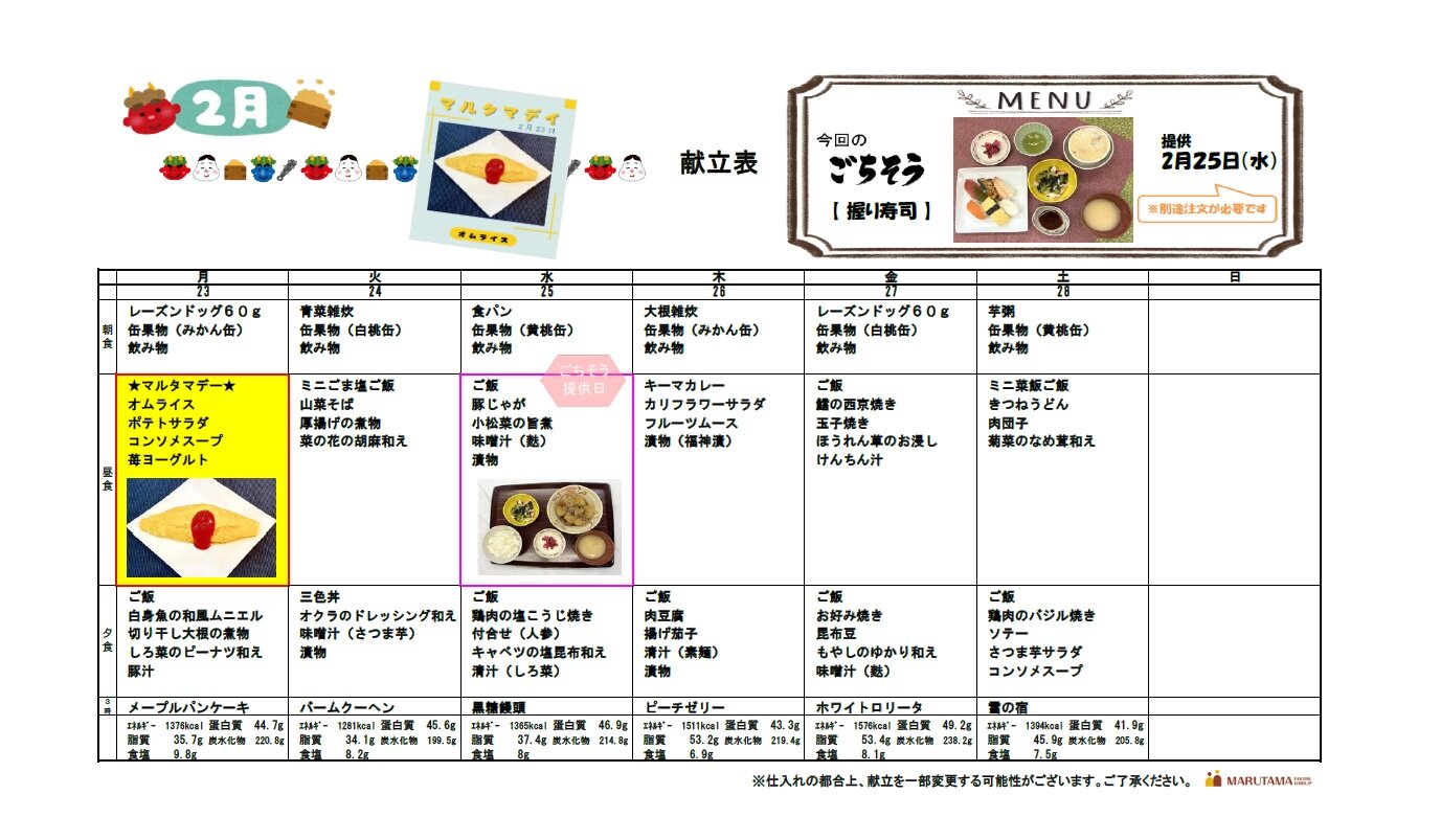 2月23日から28日までの献立をご紹介いたします(*´▽`*)