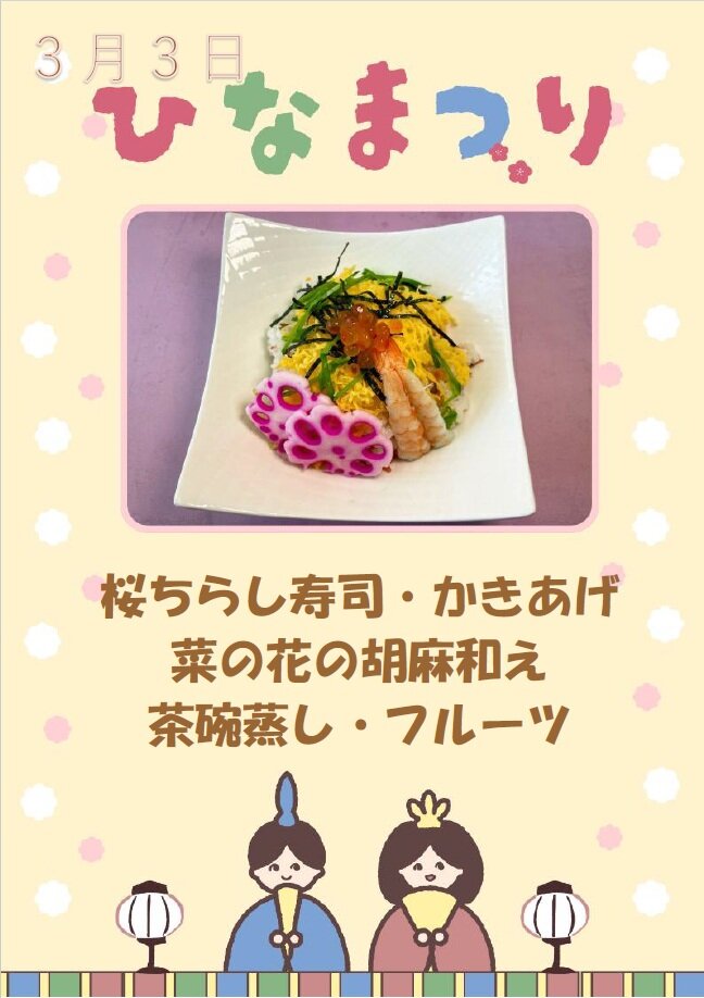 ひなまつりにちなんだメニューが振舞われます(/・ω・)/