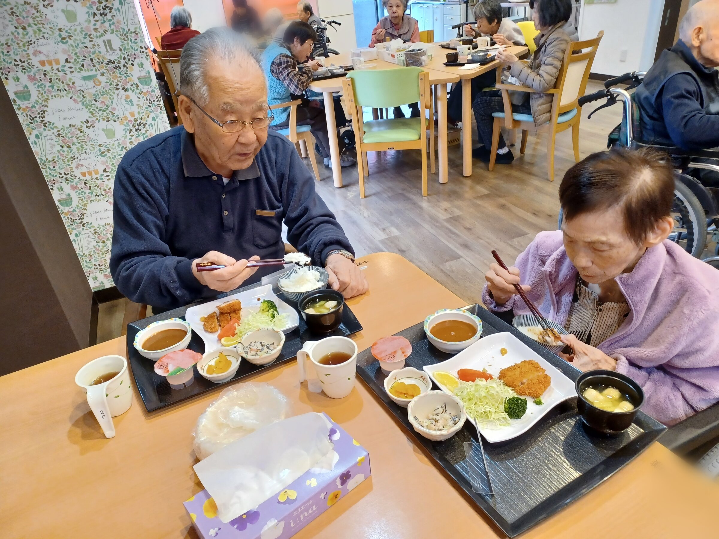 3月18日にごちそうメニューとして「三元豚の厚切りとんかつ」が振舞われました('ω')ノ
