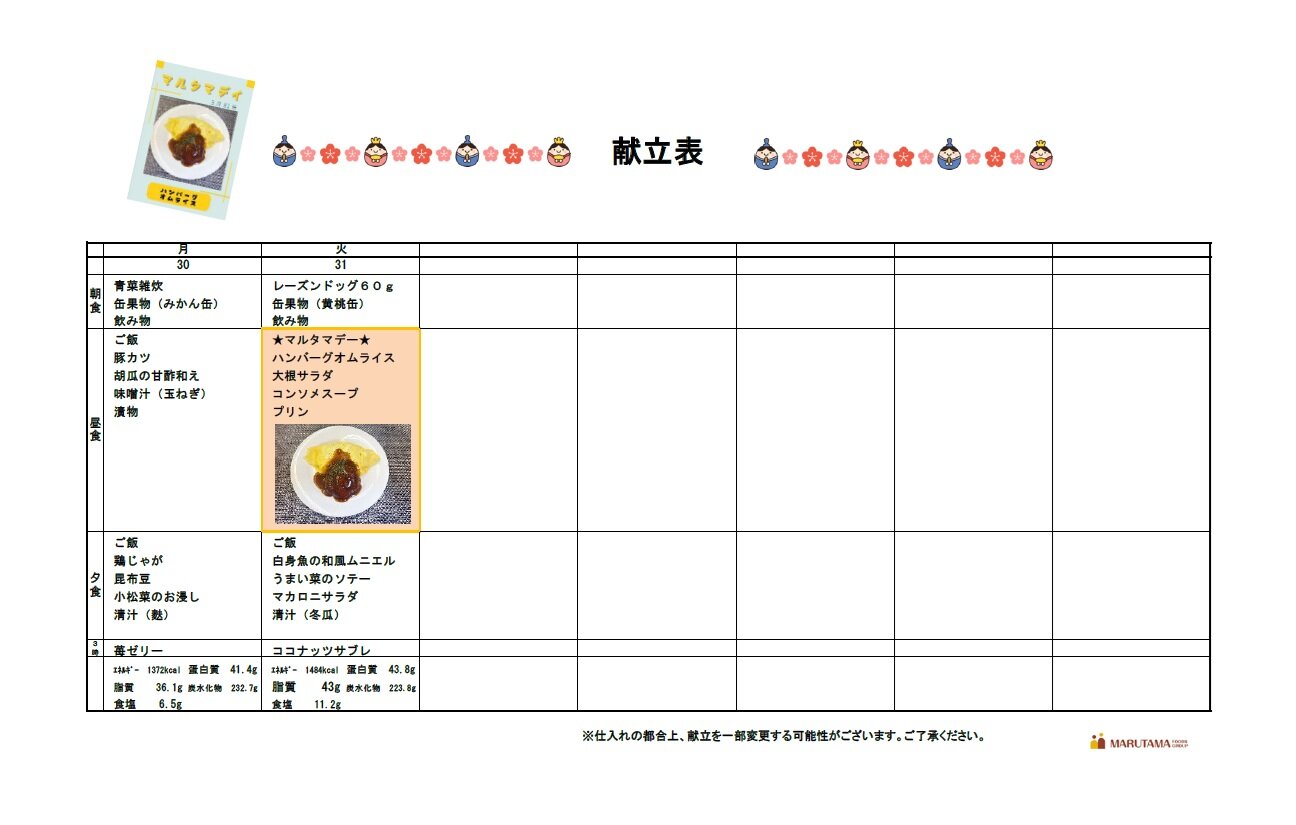 3月30日、31日の献立をご紹介いたします(*'ω'*)