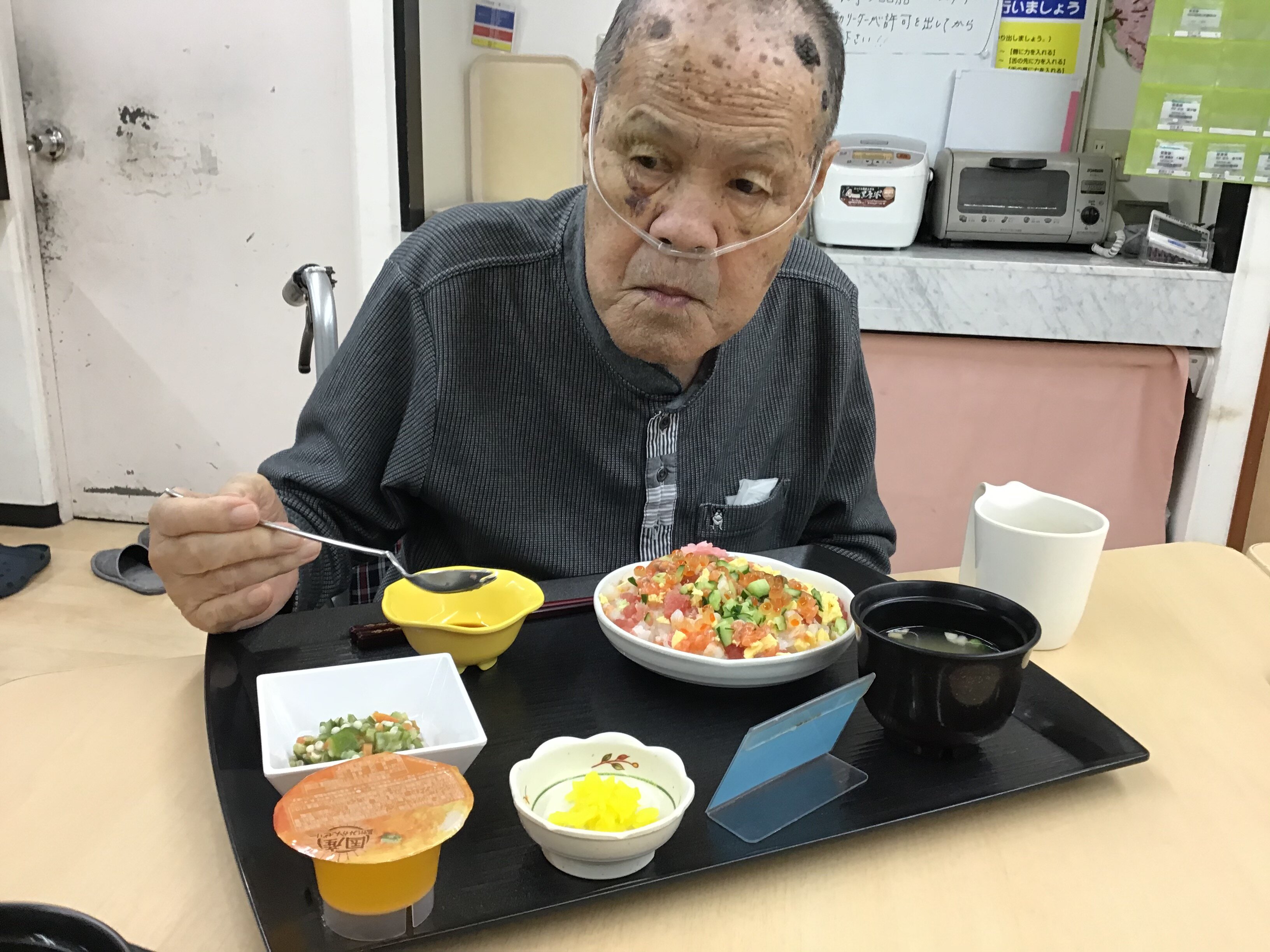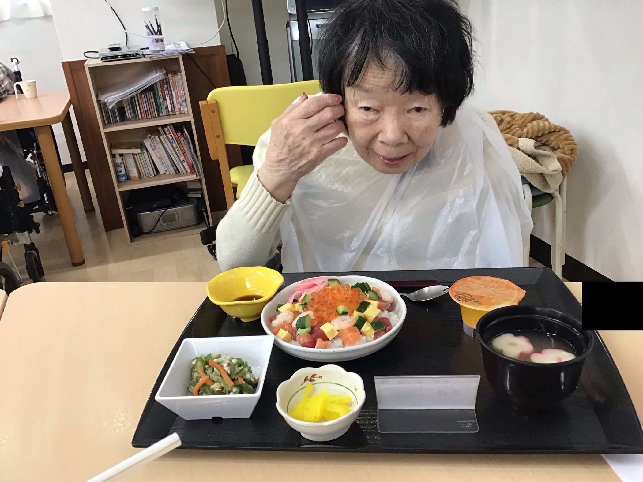 3月25日にごちそうメニューとして「海鮮ちらし」が振舞われました('ω')ノ